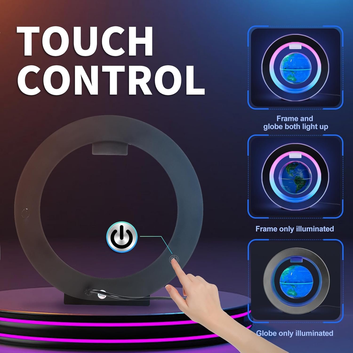 🌎TOUCH SWITCH: This magnetic levitation globe comes with a touch switch that controls the lights of the frame and the sphere separately. Not only can it be used as a night light, it is also a perfect display unit for all spaces such as desks, bookshelves, classrooms, home or office conference rooms.