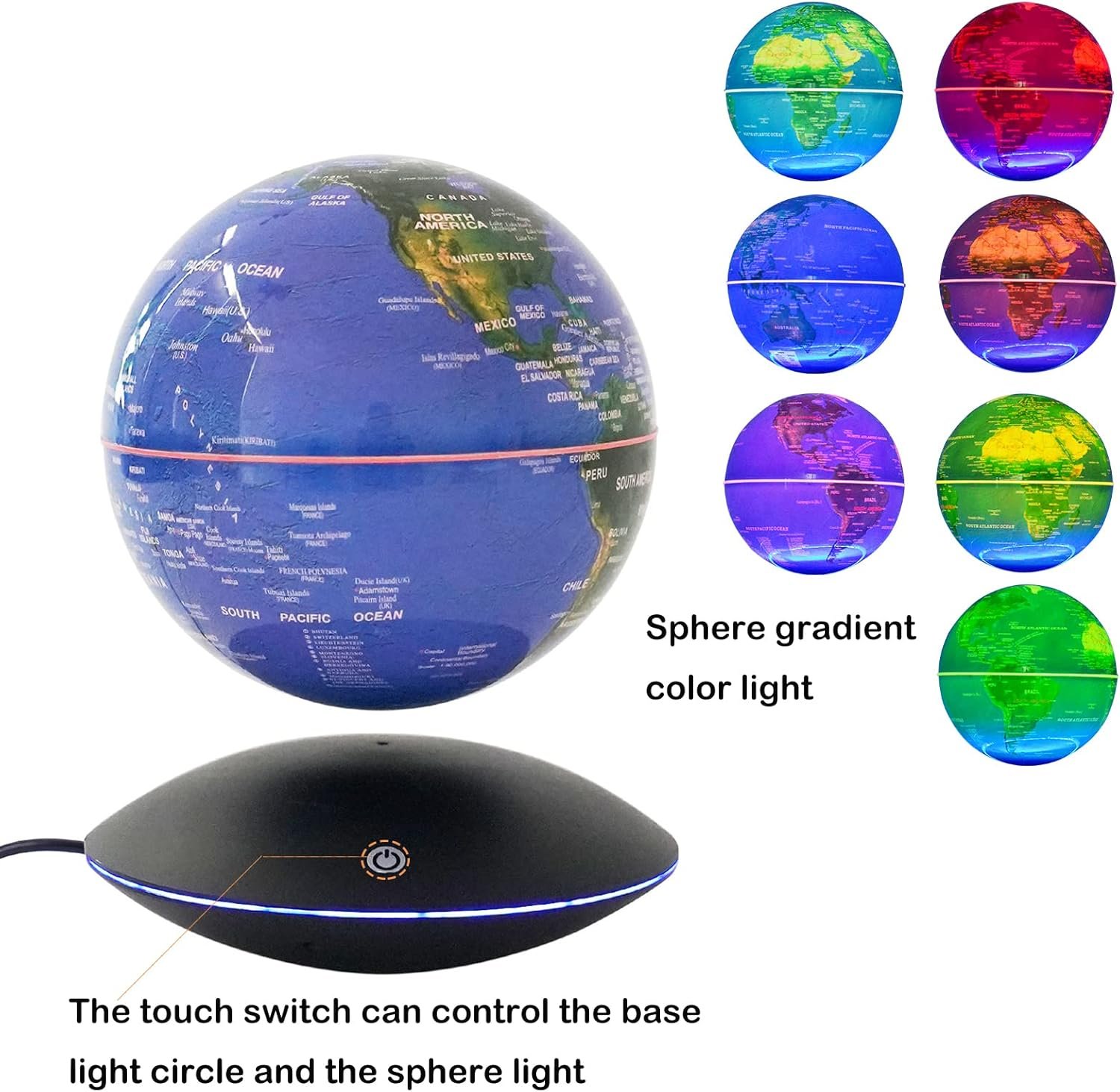 【Multicoloured Lights】The world globe has a total of 7 light-emitting colours which can be adjusted by touch, especially at night moving earth globe looks very beautiful, levitating, floating, floating, giving the illusion of anti-gravity, which is a very pleasant thing to do.