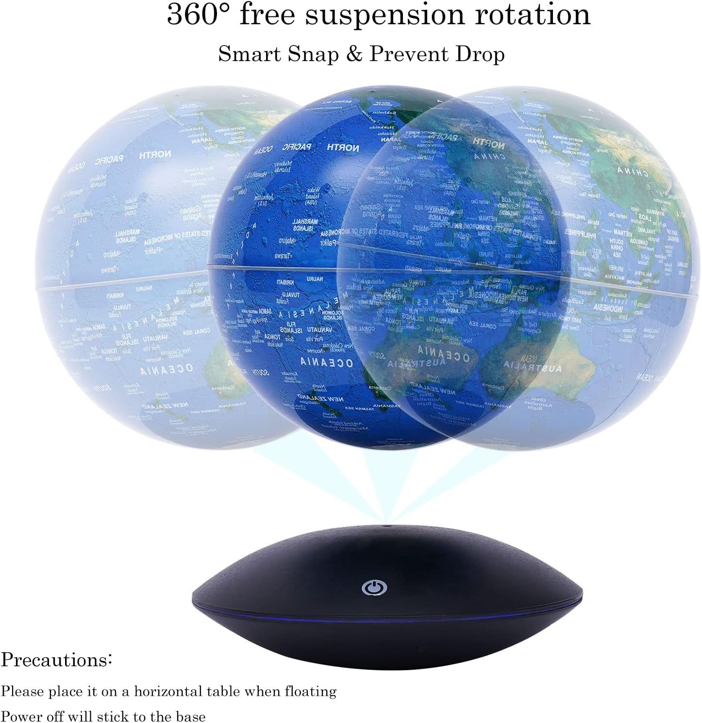 【Magnetic Levitation Technology】The magnetic levitation globe is a high-tech artwork made with magnetic levitation technology. The floating globe is suspended in the air by the magnetic levitation technology, and levitating globe can rotate 360 degrees when world globe is suspended on the earth, and once the base is powered off, the globe will naturally attach to the base.