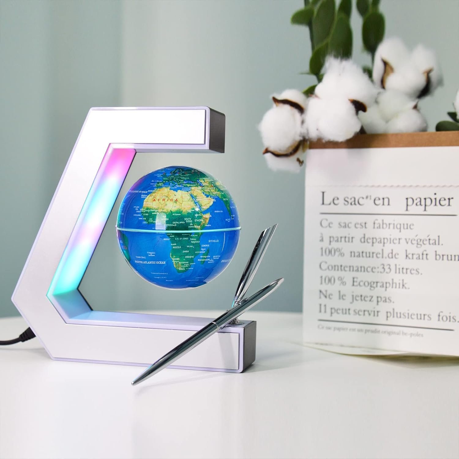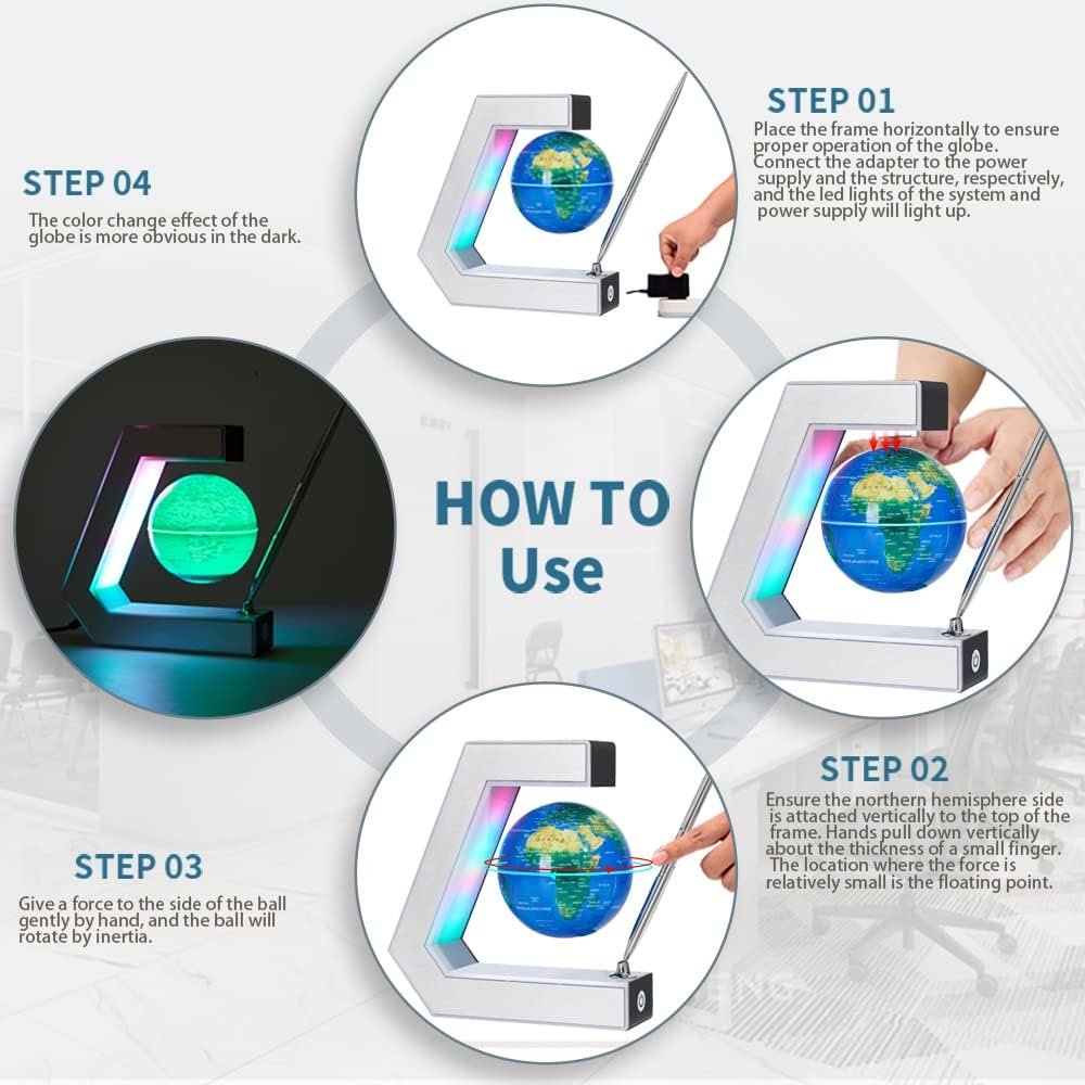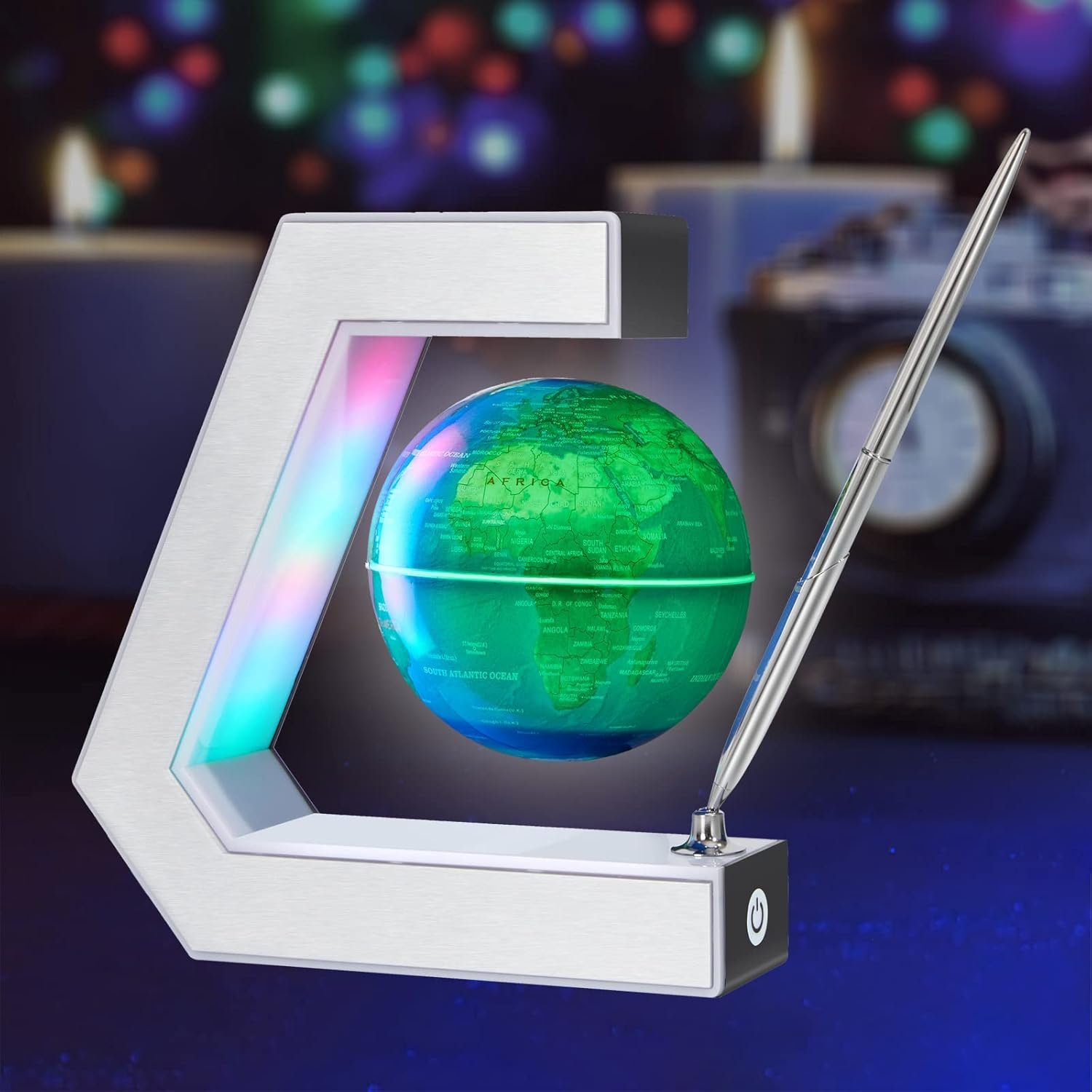 2.Wireless floating light: when the magnetic globe is close to anti-gravity space, the world will emit light and alternate colors such as white, green, and red(the globe has built-in led and coil, no battery); for the boss/boyfriend/husband, this is a cool gadgets tech accessories and a good holiday gift for the children.