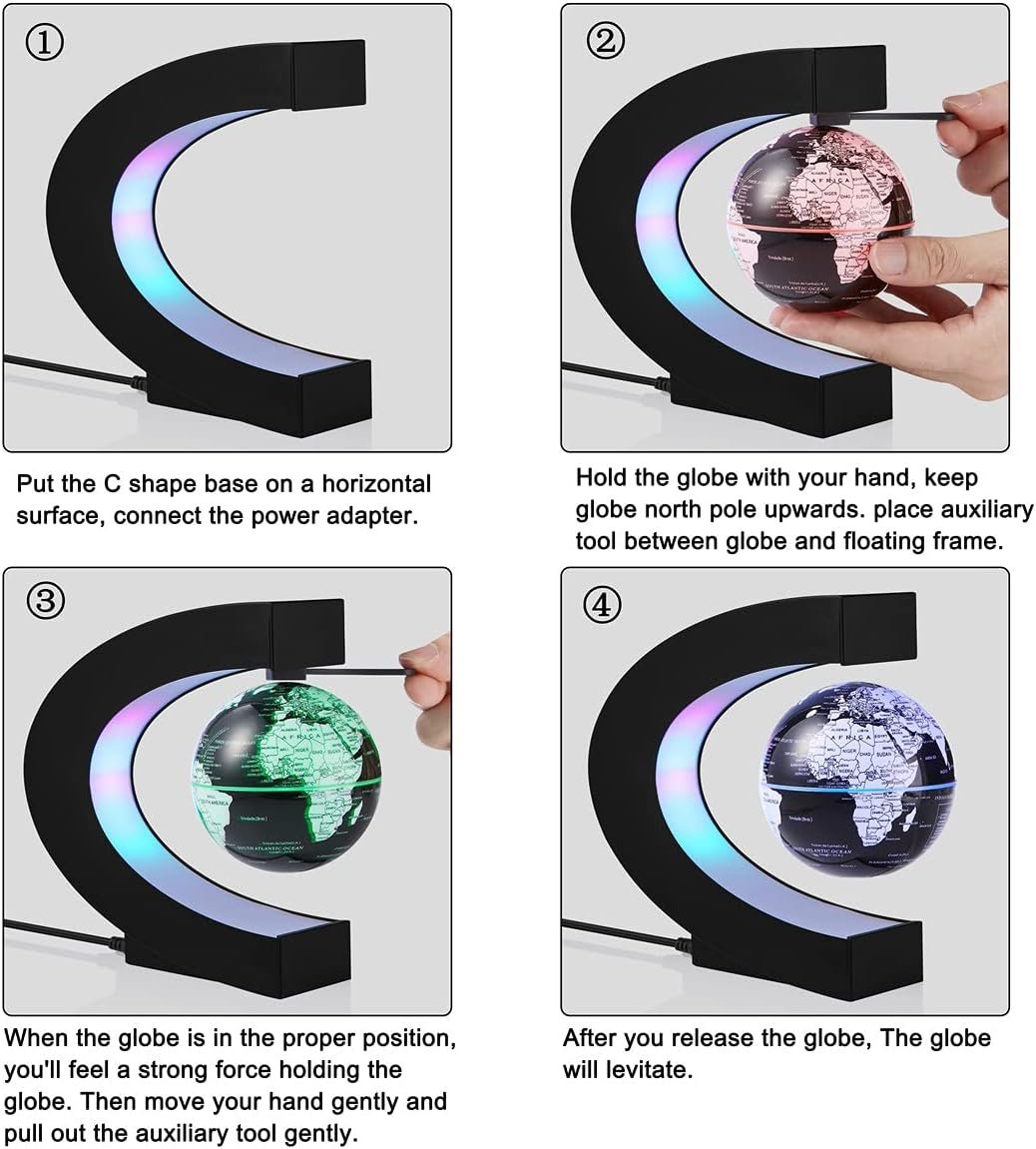 【MULTI-COLOR LED LIGHTS】Globe light built-in light strip with 7 LED lamp beads. When you connect C-shaped floating frame and the light is on,you will see the multi-color changing when it rotates,it is very beautiful and fantastic when in the night time.