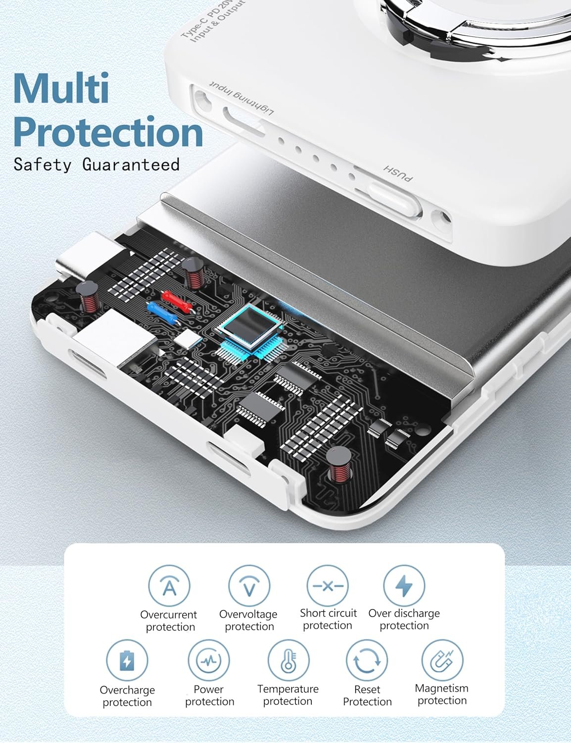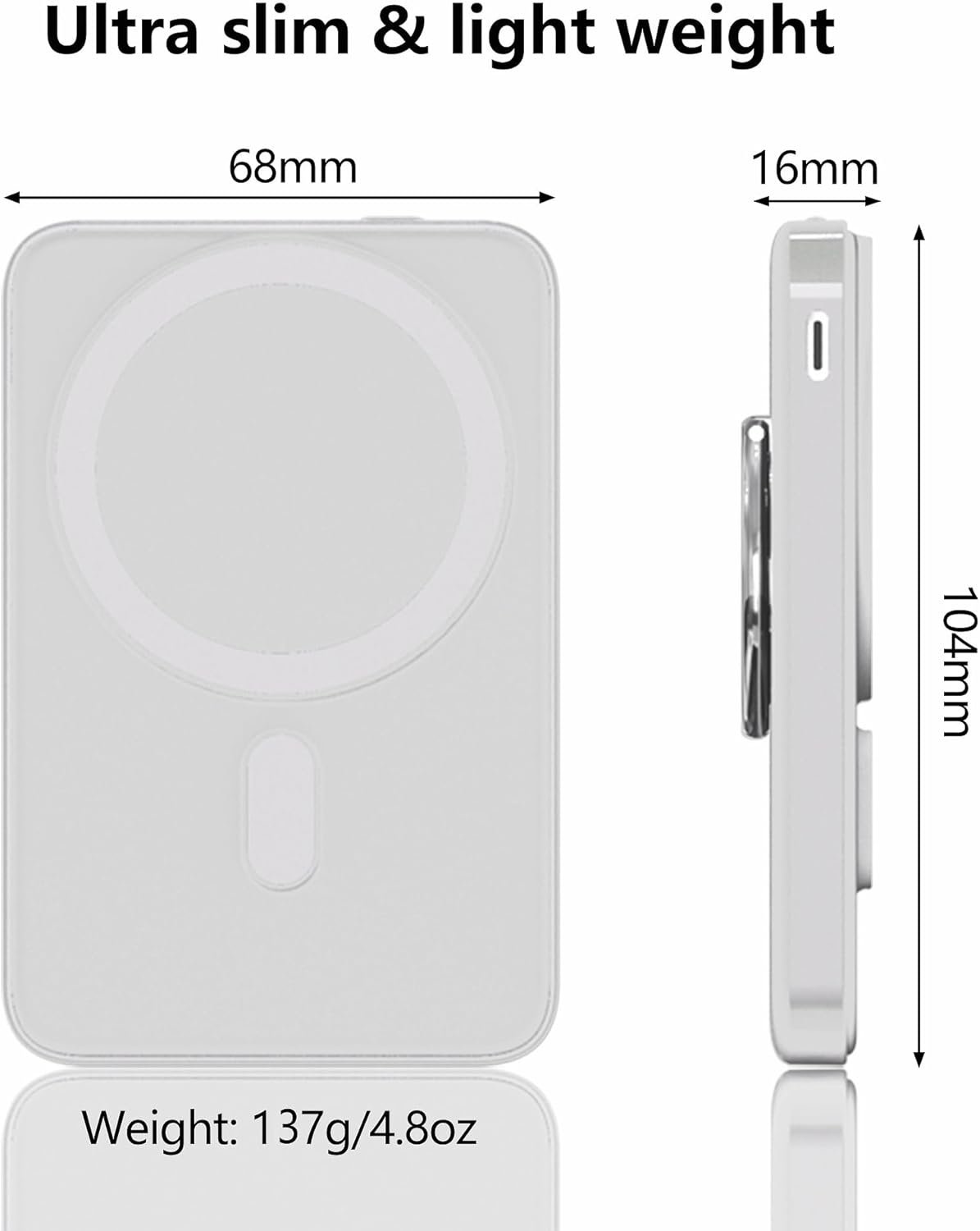 【What you get】5000mah Wireless Power Bank x1, USB-C to USB-C Cable x1, User Manual x1, worry-free 24-month warranty, and friendly customer service within 24 hours