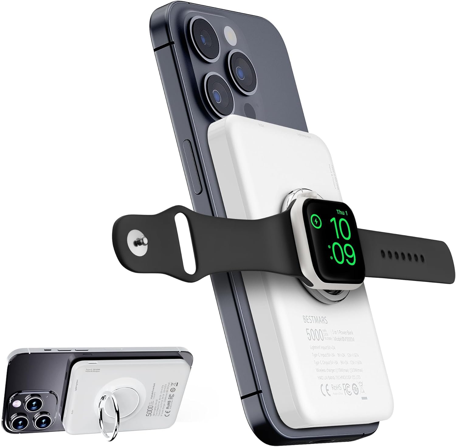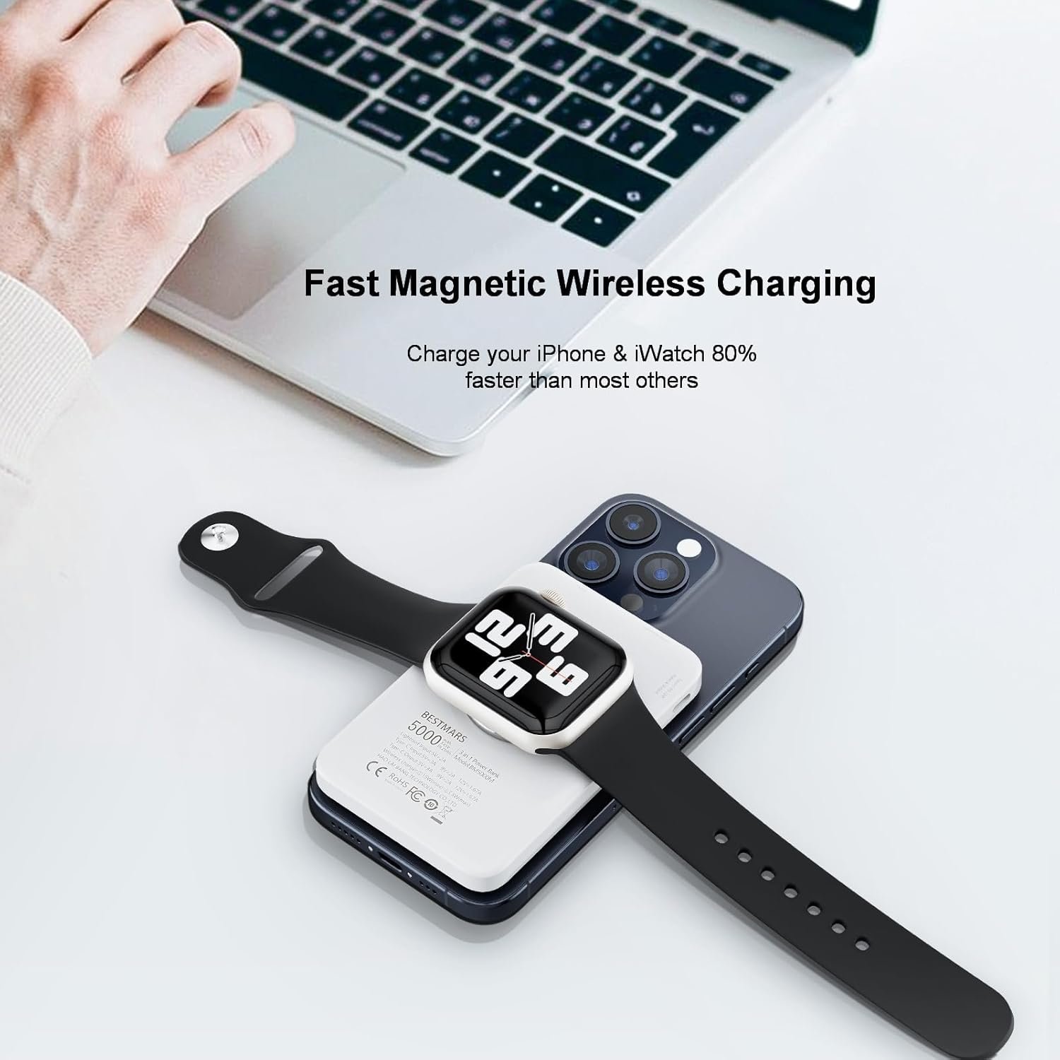 【Magnetic Wireless Power Bank】This BESTMARS magnetic powerbank is magsafe compatible, specifically made for iPhone 15/14/13/12 series, nano adsorption and stronger magnet enable the power bank to snap on your iPhone securely, prevent slipping or dropping while charging wirelessly