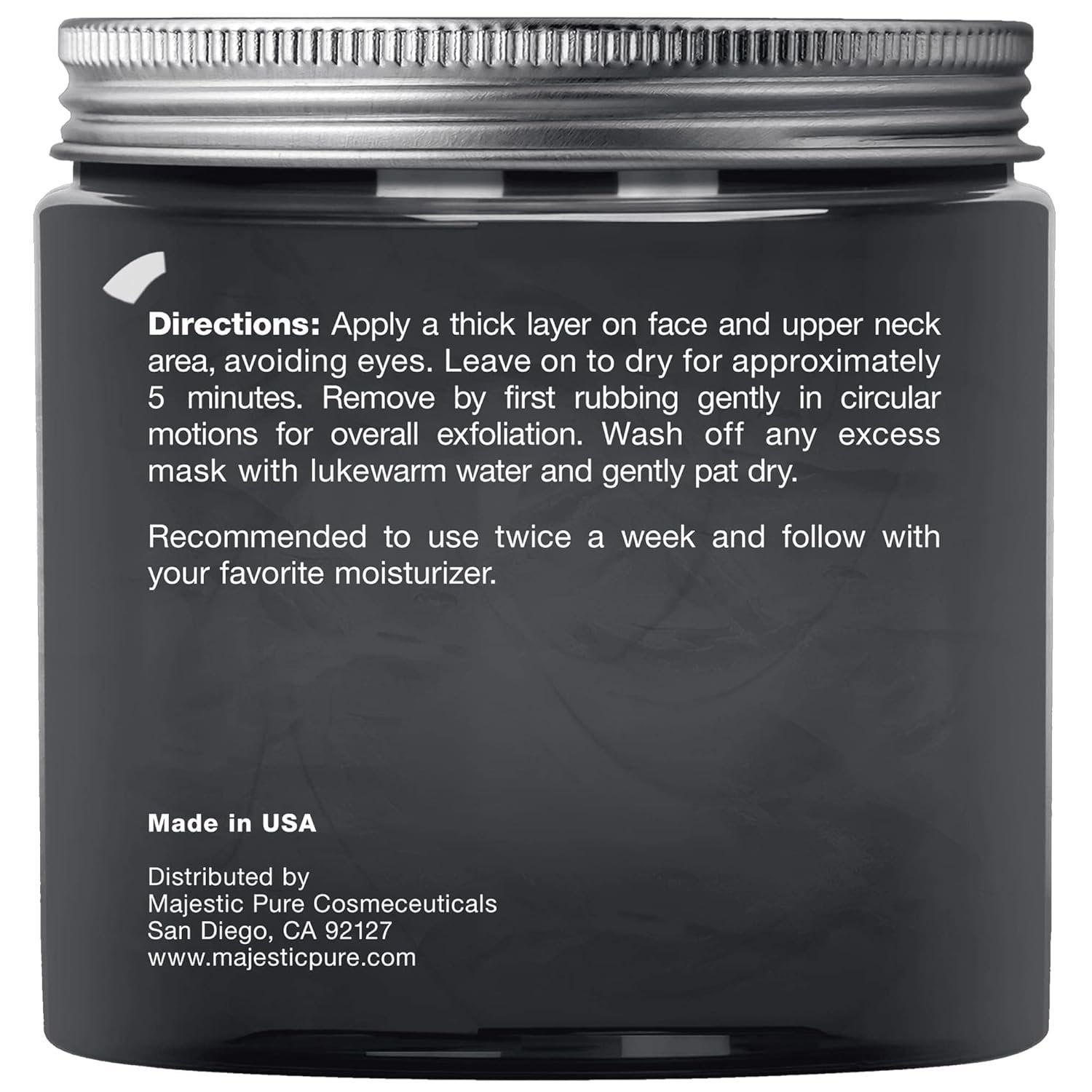 Majestic Pure’s Dead Sea Mud Mask is a unique formula made with authentic Dead Sea Mud, universally known for its high quality salts and minerals that contribute to radiant, healthy looking skin. Excellent for facial skin care support, deep pore cleansing and for a revitalizing look. Works well on oily and sensitive skin. Makes a fabulous facial mask for reducing the appearances of pores, toning skin and removing impurities.