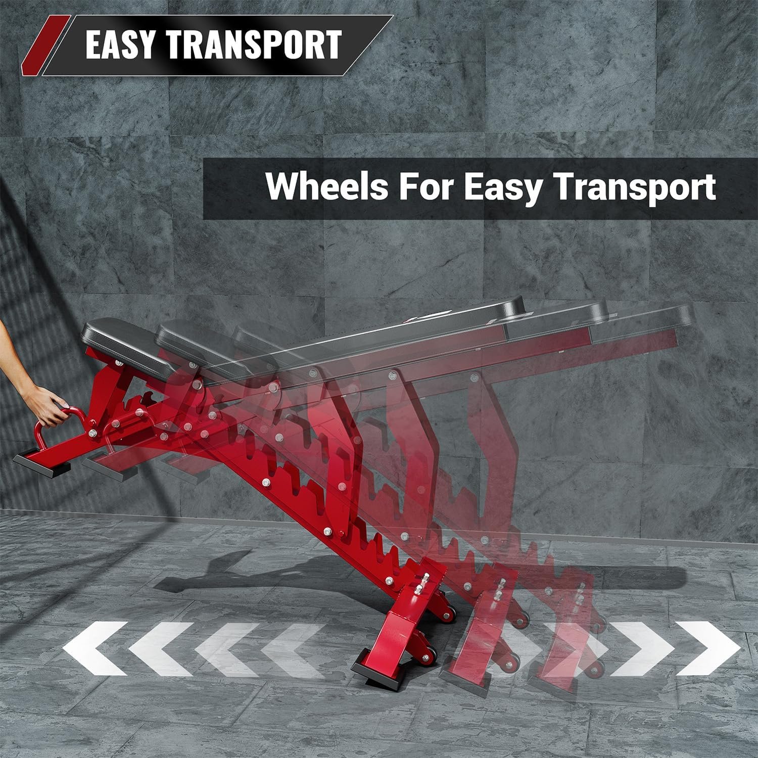 Easy Assemble and Move: Assembling this strength training bench is a breeze, with all parts and tools neatly organized for quick setup. Just spend a few minutes tightening the components, and you can enjoy a commercial-grade workout. Perfectly sized and not taking up space, our adjustable weight bench has an extra handle and two wheels, making it easy to move the gym bench and exercise anywhere, anytime
