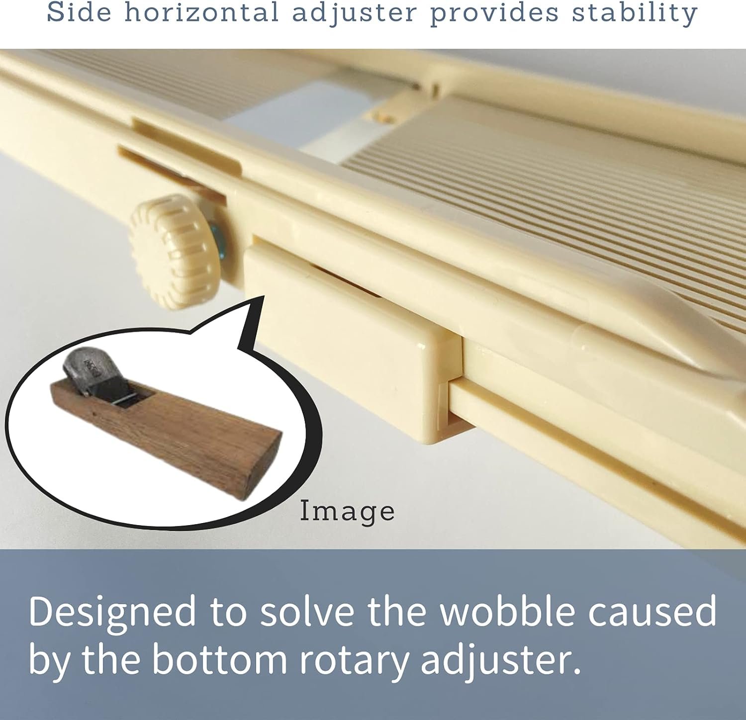 Side horizontal movement adjuster provides stability: Designed to solve the wobble caused by the bottom rotary adjuster.