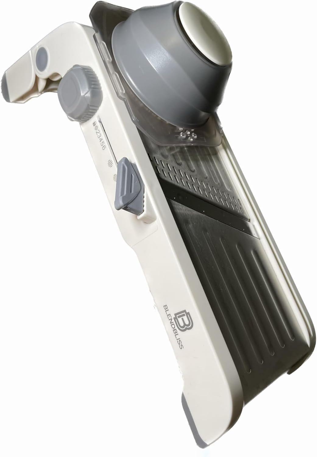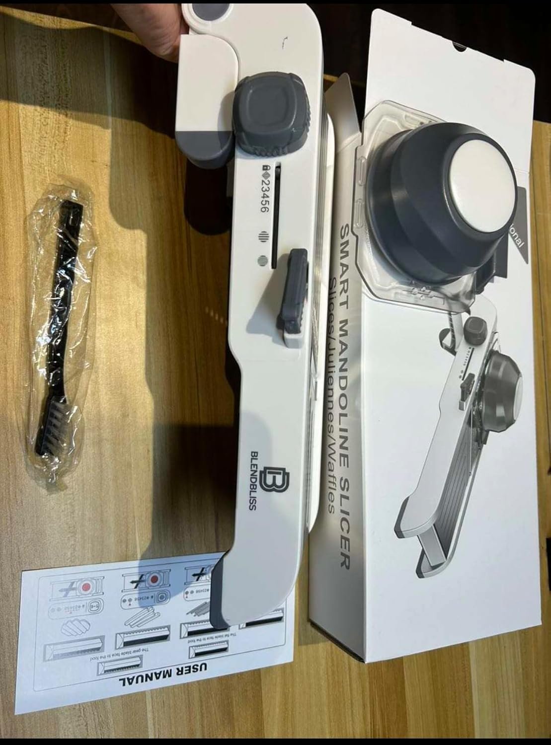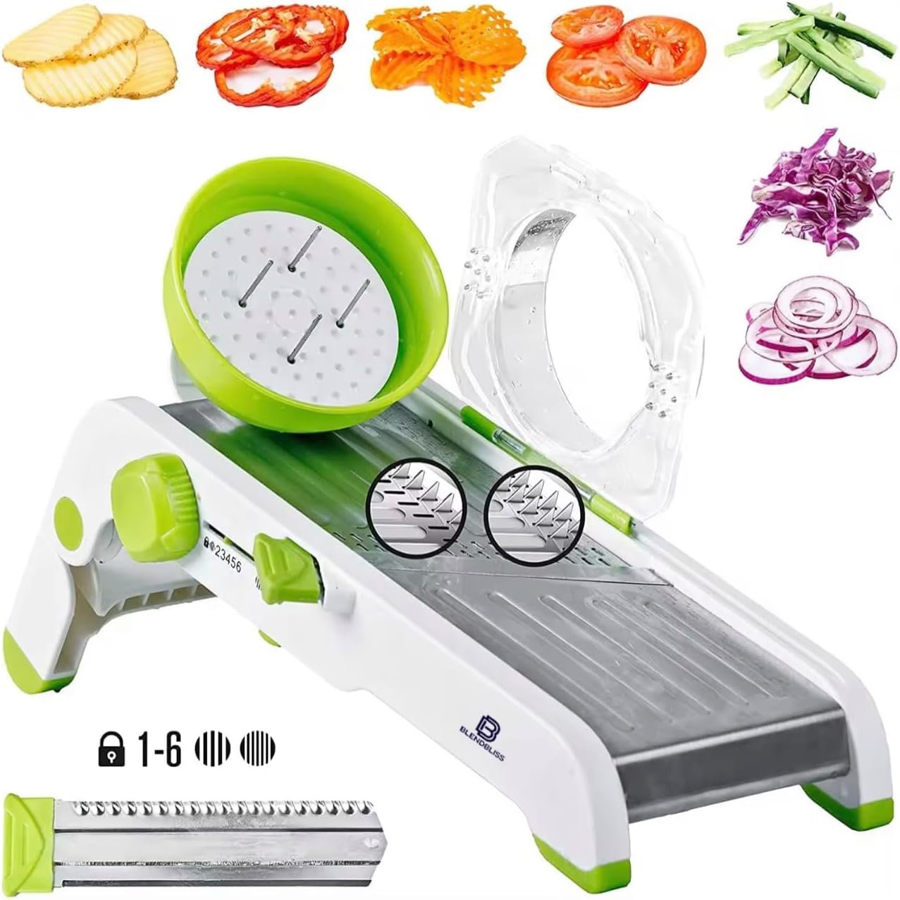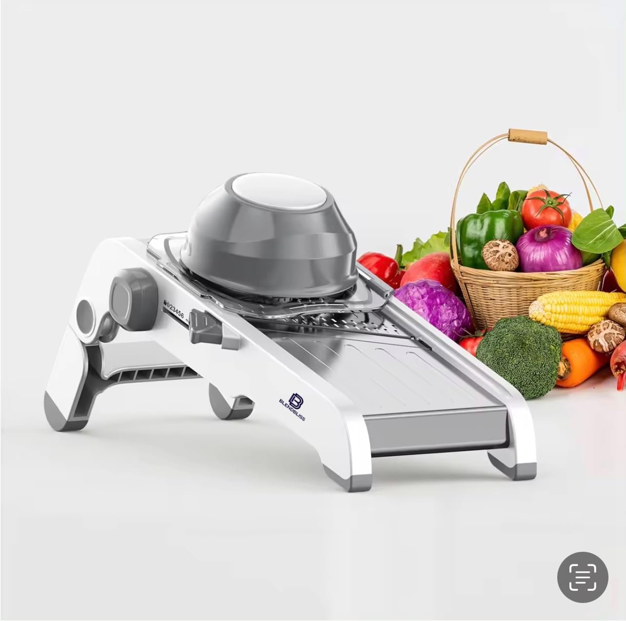 “Prepare your meals with ease and precision with our Mandoline Vegetable Slicer Adjustable! This versatile kitchen utensil allows you to slice a wide variety of vegetables and fruits in different thicknesses by simply adjusting the knob. Its safe and ergonomic design makes it perfect for any amateur or professional chef. Save time in the kitchen and enjoy perfect cuts every time!” “Elevate your kitchen experience with our Mandoline Vegetable Slicer Adjustable, designed to simplify food preparation. With its ingenious adjustable design, you can easily select the slice thickness you want for each ingredient, from thin salad slices to thicker cuts for homemade french fries.This mandoline slicer is built with high-quality, durable materials that ensure reliable performance over time. Its ergonomic handle provides a comfortable and secure grip, while the integrated safety mechanism prevents accidental cuts, giving you comfort. peace of mind while you cook. Plus, cleanup is quick and easy thanks to its detachable design. All parts are dishwasher safe, allowing you to easily clean them after each use. Whether you’re an experienced chef or a beginner in the kitchen. , our Mandoline Vegetable Slicer Adjustable will help you prepare delicious meals with ease and precision. Get yours today and discover a new way of cooking!”