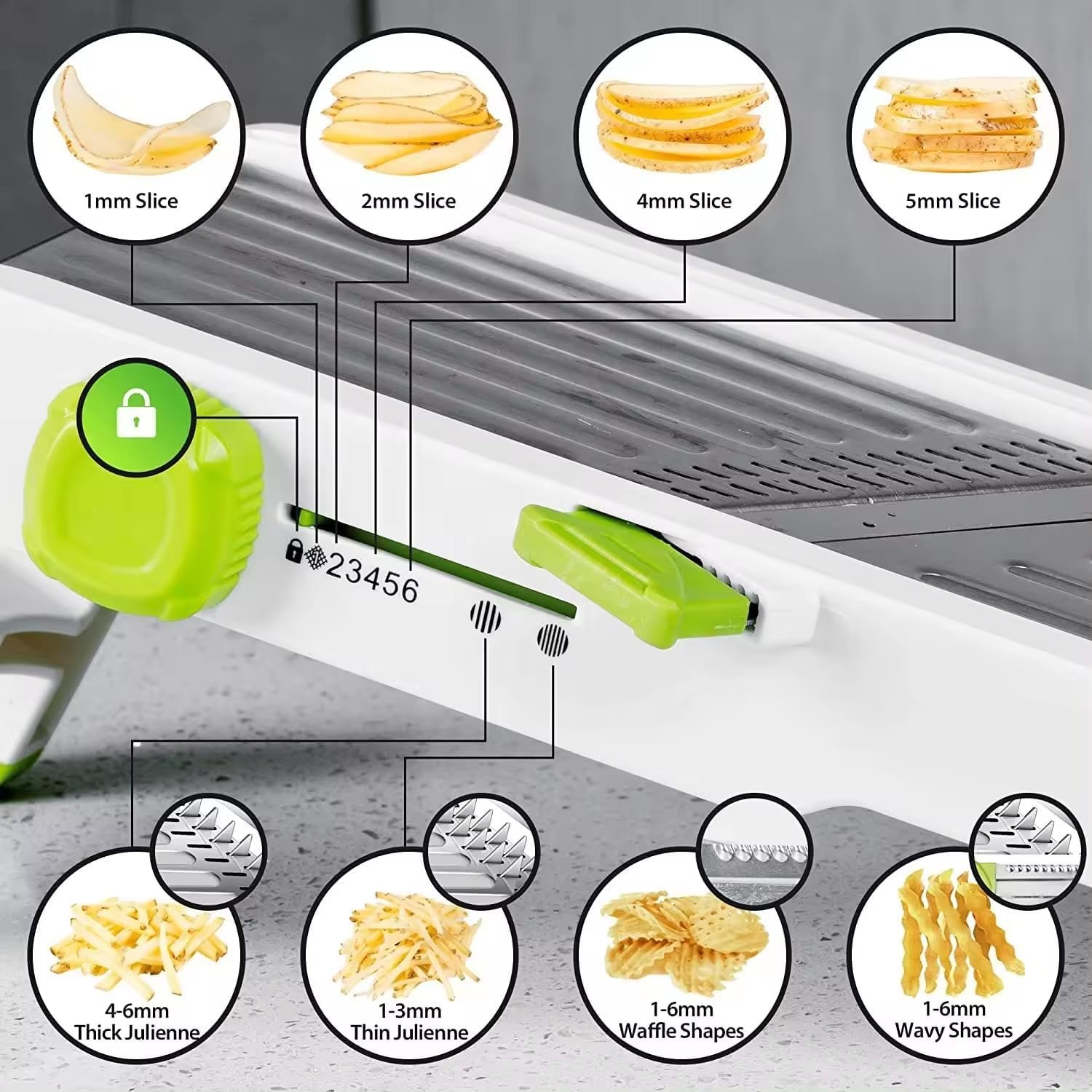 Cut a wide variety of vegetables and fruits with precision. Adjustable design allows you to choose between different cutting . it has a safety mechanism for worry-free use.provides a comfortable and secure grip during use, make cutting easier.easy to clean after use. Simply rinse under water or place in the dishwasher for hassle-free cleaning.Constructed from high-quality materials that ensure long-term durability and performance in your kitchen.Save time preparing food ,allows you to quickly cut a variety of ingredients.