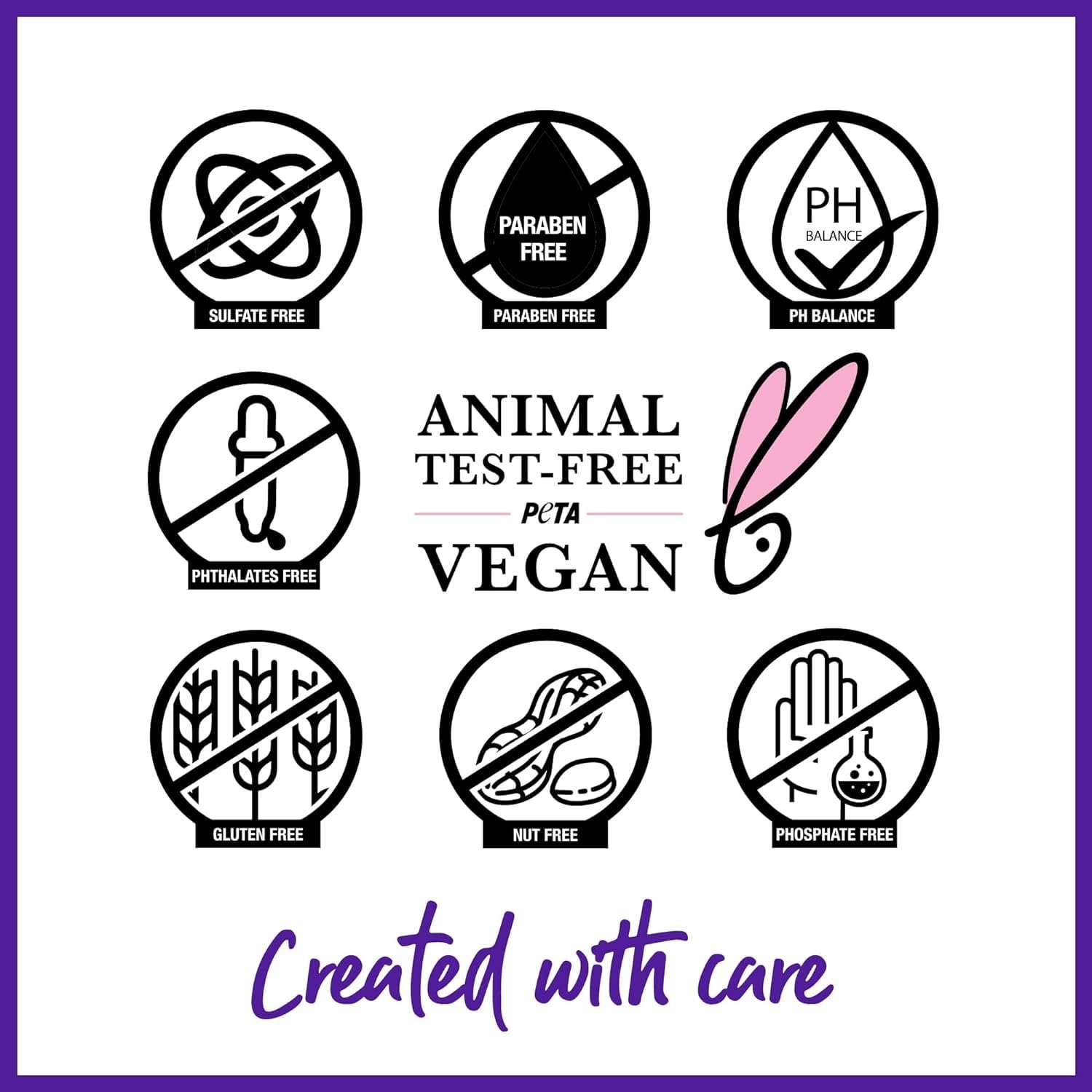 Vegan, cruelty-free and free of sulfates, parabens and phthalates