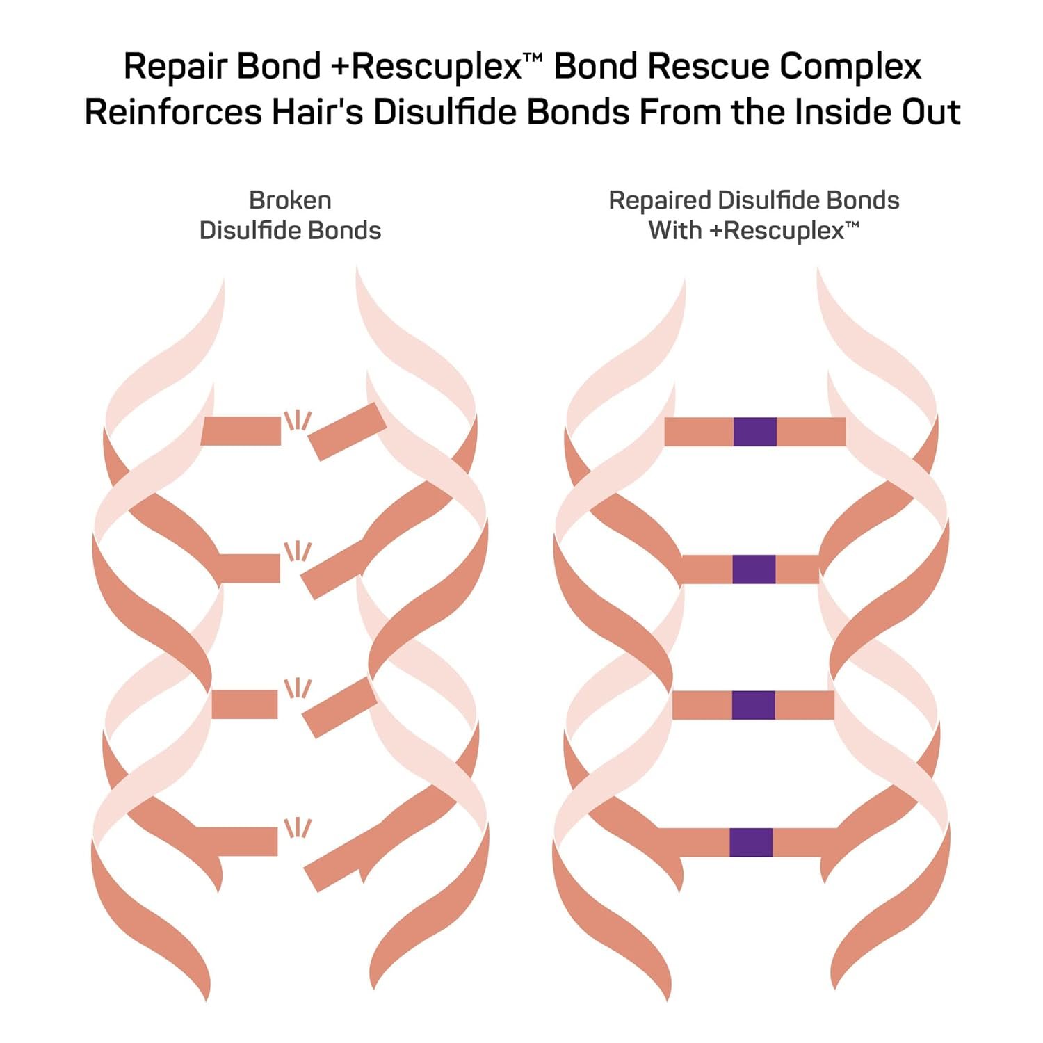 Stay Strong: The Repair Bond system is formulated with Rescuplex, a complex developed to rebuild and maintain hair’s damaged bonds, including disulfide bonds. Designed with added ingredients like rice bran oil, rosemary oil, hydrolyzed quinoa and vitamin C, the Repair Bond +Rescuplex system is proven to result in hair that feels 111% stronger, 140% smoother and with 129% more shine.