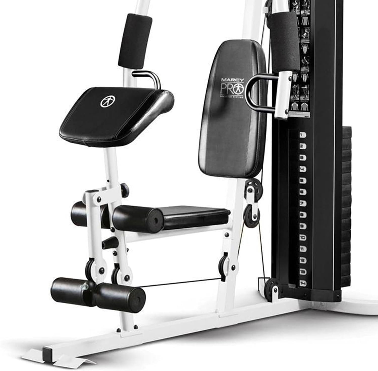 Marcy Home Gym Workout Station, Full Body Exercise and Training Equipment with Preacher Curl Pad, Lat Pulldown, Leg Developer & Weights, White