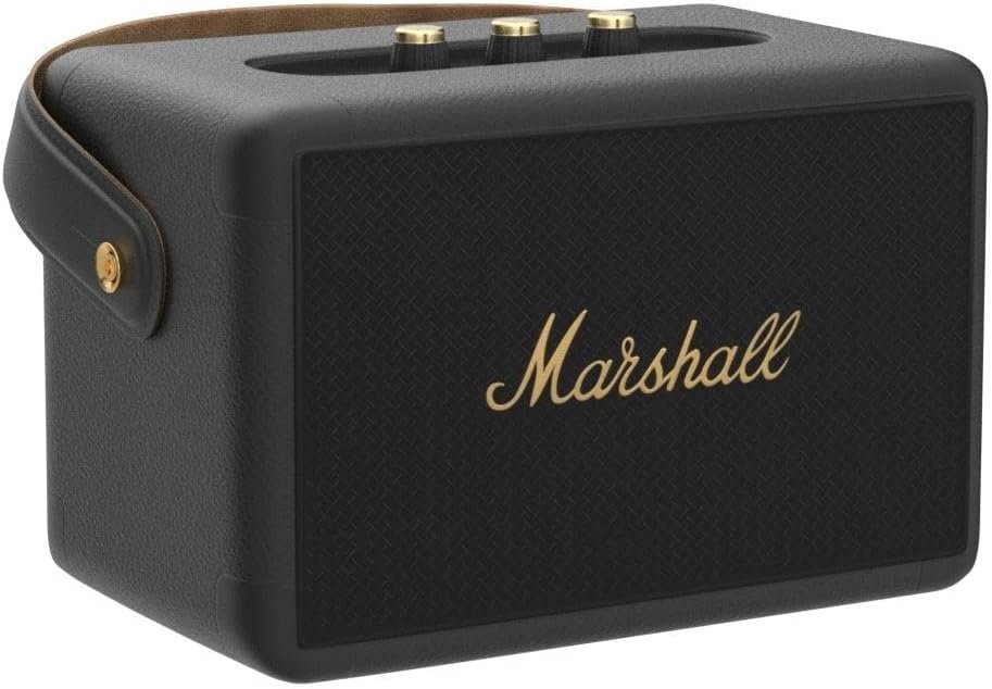 Get on the road with Marshall Kilburn II portable speaker. Free from the confines of wires and cords, this Bluetooth speaker offers 20+ hours of portable playtime on a single charge. This stout-hearted Hero weighs only 6 lbs. And is the loudest speaker in its class. It produces a clear midrange, deep base and extended highs that are unrivaled for a speaker This size, and its multi-directional sound will immerse you in your music, indoor or out. Echoing the legacy of rock “n” Roll, Kilburn II has a solid metal grille that Pats homage to the steel mesh grille found on many microphones and a guitar inspired carrying strap for easy portability. Its flush mounted corner caps and water-resistant design make it supremely rugged and durable. Kilburn II is able to withstand even the longest days on the road.The product is multiple voltage compatible, that voltage arrange is 100-240V.