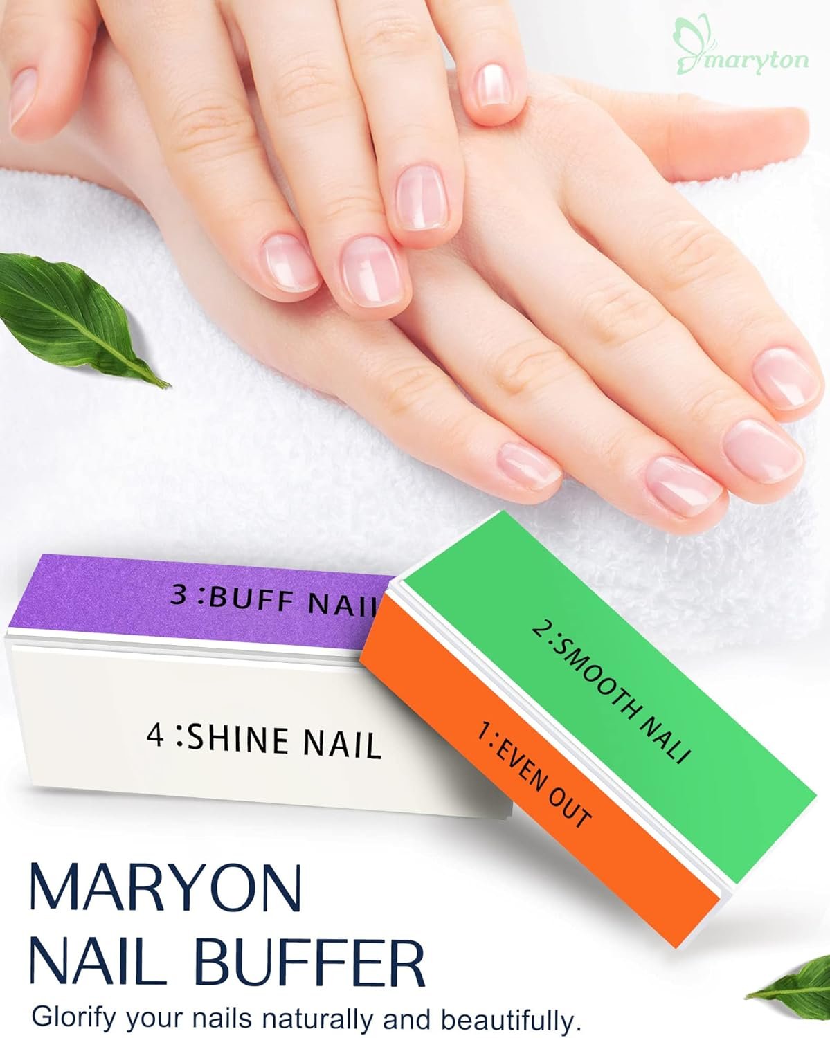 Maryton Professional Nail Buffer Block – Ultimate Shine Nail Buffing Block with 4 Way Buffing Methods, Smooth & Buff & Shine All-in-one Buffer for Optimum Natural Nail Care, 2 Count