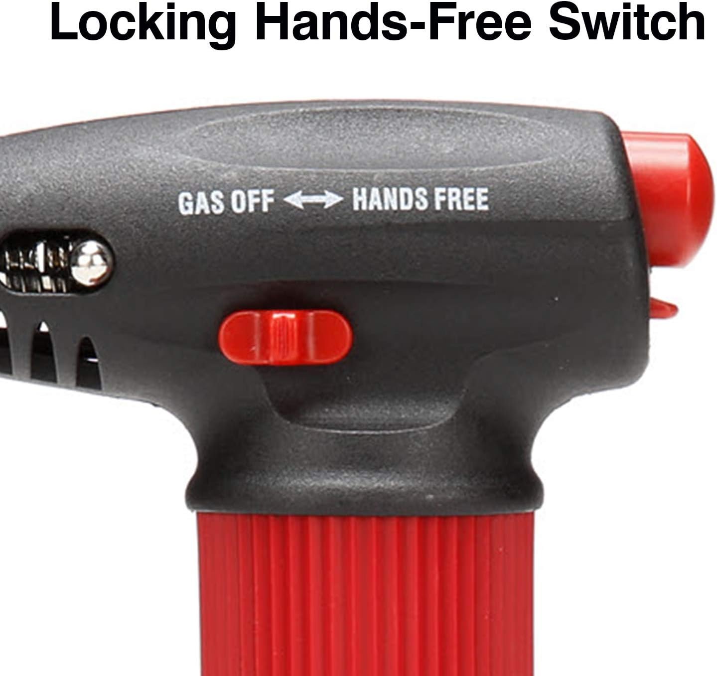 ADJUSTABLE FLAME: Temperatures up to 2500 degrees Fahrenheit, use the red lever to adjust the butane flame from a thin blue pinpoint flame to a full butane torch flame