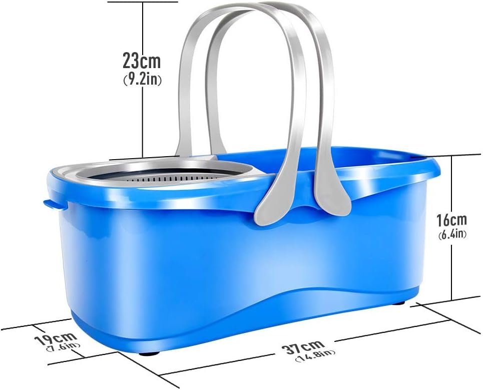 Small Size Mop Bucket Designs:The size of spin bucket is: 16.92*6.69*10.23 inches. The capacity is 1 gallon.The Mini Mop Bucket makes it easy to take it where you need to clean. This mop with bucket can also be conveniently stored away after use. Our mop and bucket with wringer set for home is ideal for small single apartments dormitories and other small places.
