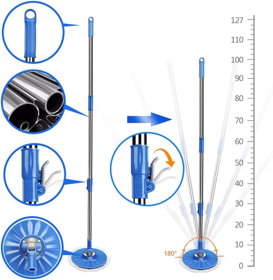 Stainless Steel Long Mop Handle: The mop stick is made of stainless steel, strong and durable.The length of the handle is adjustable according to the height of use, ranging from 43 – 51 inches. Simply open the fixture and give it a gentle tug to adjust it to the length that suits you.