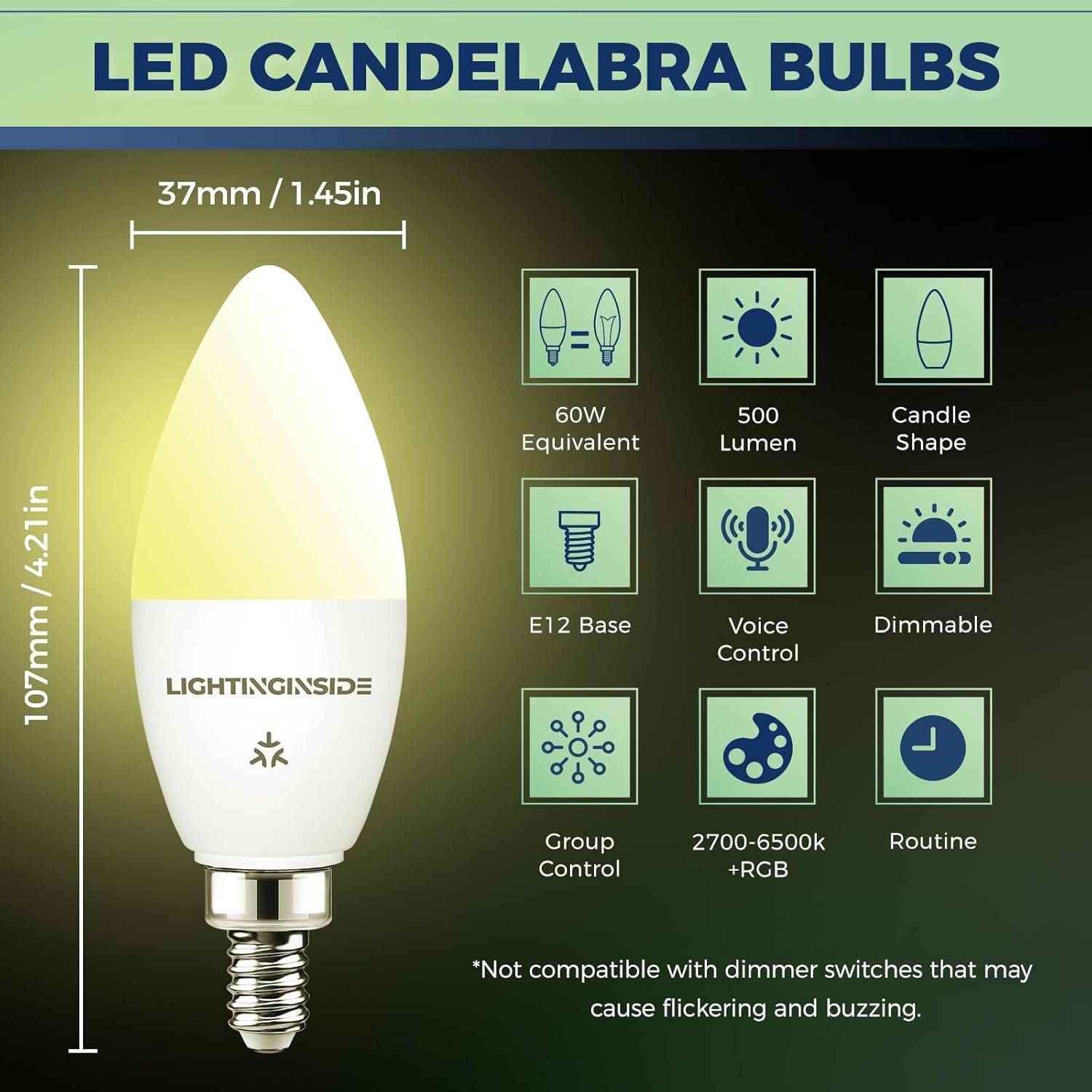 Smart Control: Enjoy a hands-free life with voice commands at home or remotely control your WiFi light bulbs via apps while away. Even automate your smart candle light bulbs individually or in a group using the routine, schedule, and other smart functions