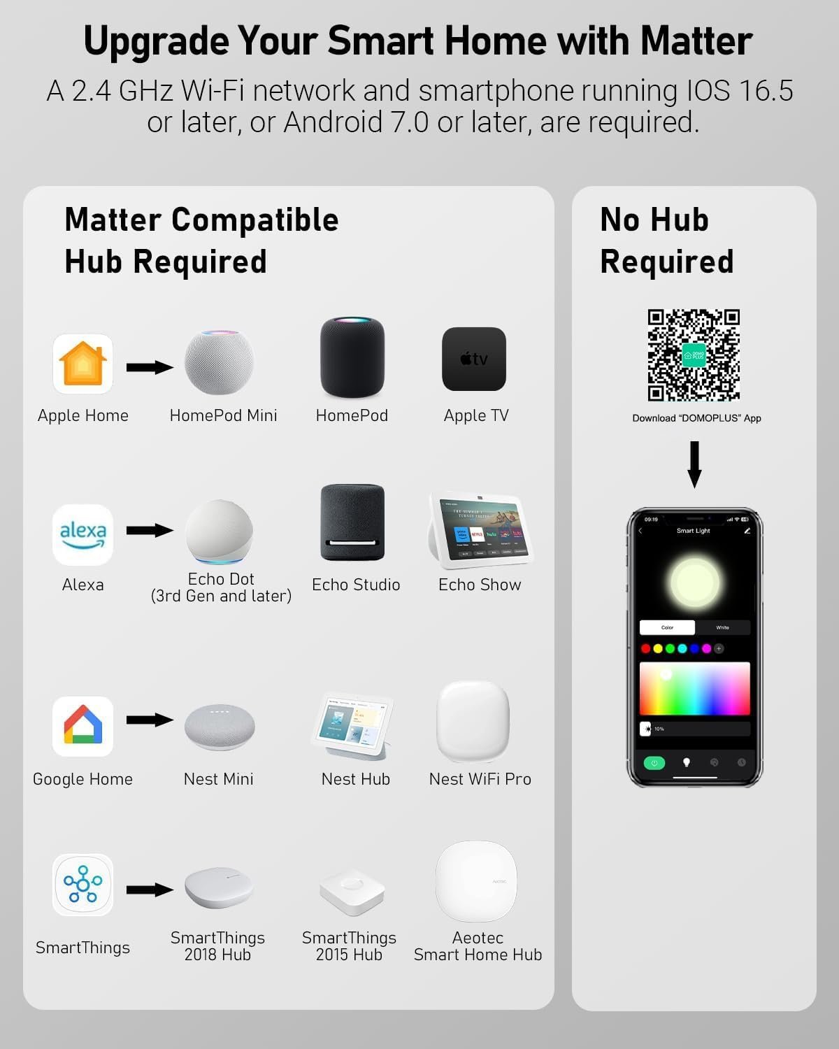 APP & Voice Control: Control your lighting effortlessly via our user-friendly DOMOPLUS app or through voice commands. Compatible with major voice assistants like Amazon Alexa, Google Assistant, and Apple Siri, making it easy to adjust your lights without lifting a finger (Smartphone running IOS 16.5 or later, or Android 7.0 or later).
