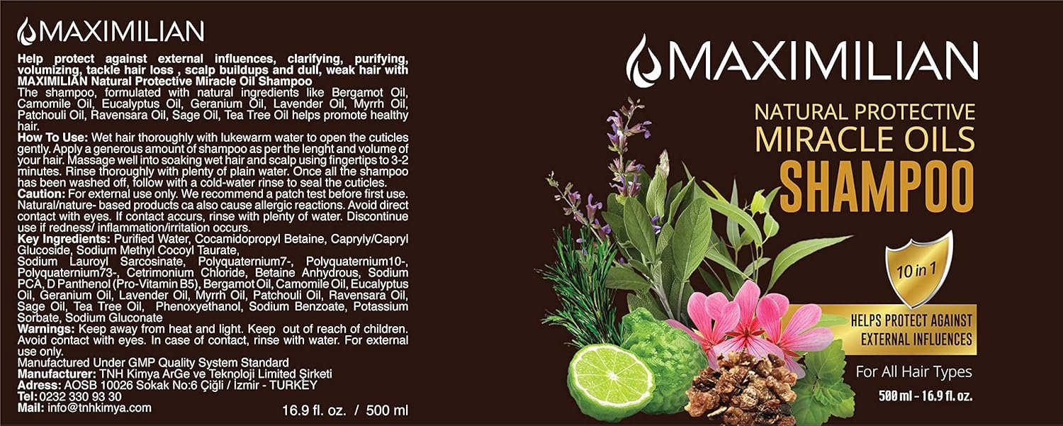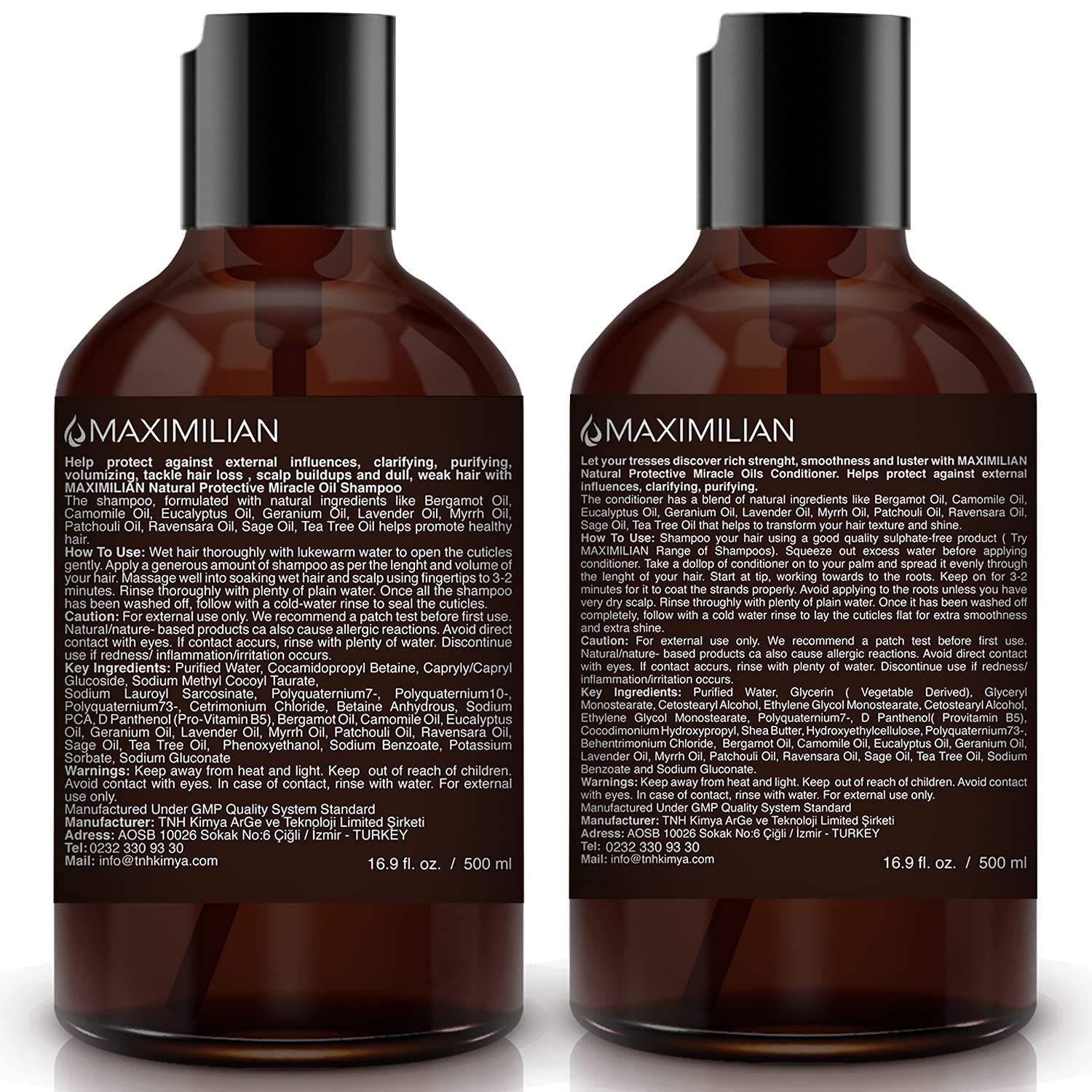 Help protect against external influences, clarifying, purifying, volumizing, tackle hair loss , scalp buildups and dull, weak hair with MAXIMILIAN Natural Protective Miracle Oil Shampoo and Conditioner Set