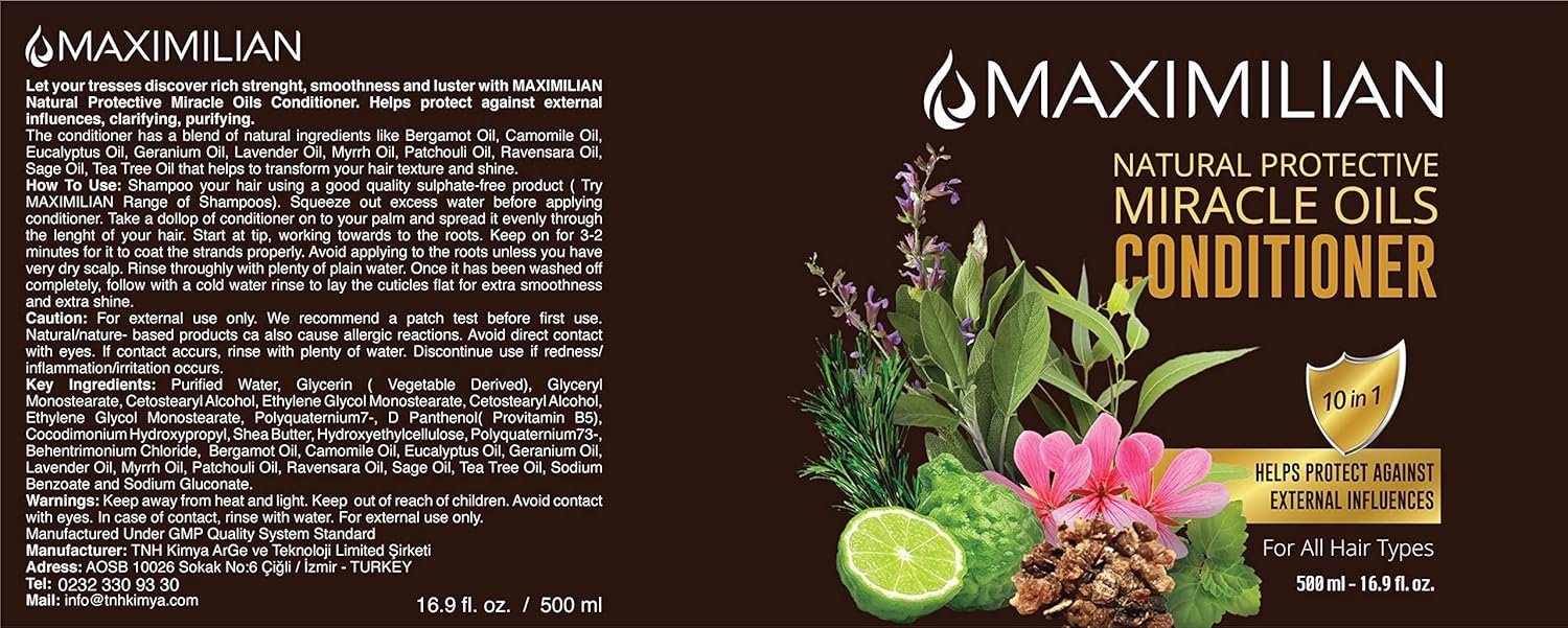 Maximilian Protective Miracle Oils Shampoo and Conditioner Set takes its power from the 10 oils and PROVITAMIN B5 it contains.