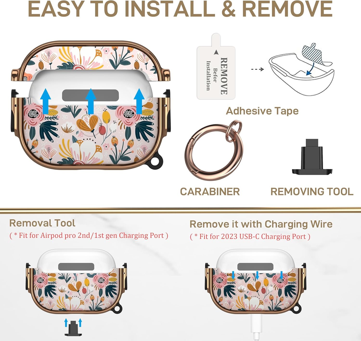 【What You Get】1*case for airpod pro 2nd/1st gen,1*Carabiner,1* Removal tool (AirPods Pro & AirPods Pro Charging Case are NOT included).