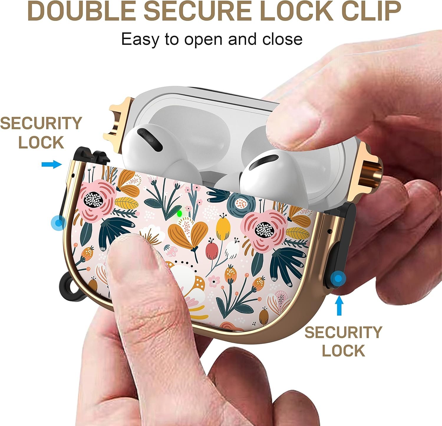 【Double Secure Lock Clip】Upgraded double side lockable function can firmly fix the upper cover of the shell, which make the tope cover connected to the bottom always, Quick-release spring-lock allows easy to install and remove the case for airpods pro 2nd generation/1st generation.Never worry your earbuds fall or lost again.
