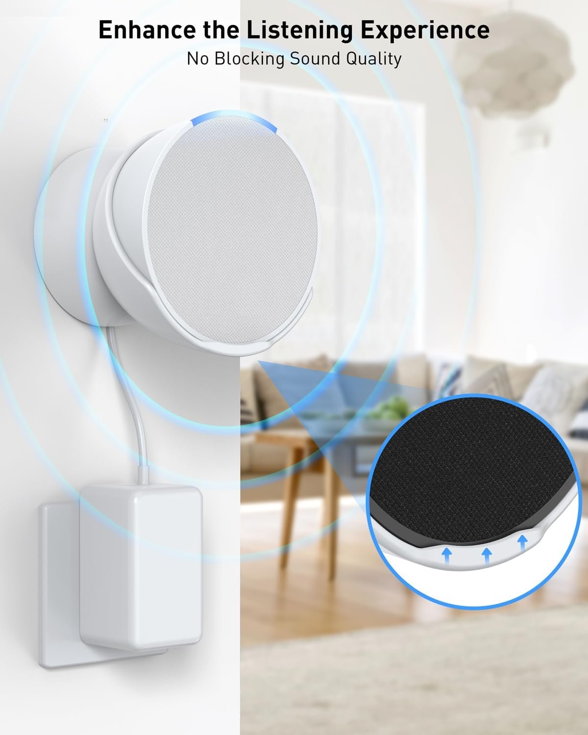 No Blocking the Sound : Maintain 100% sound quality, enhance the listening experience. The bottom of the mount adopts anti-drop raised groove design, effectively holds the speaker well and prevents it from falling off