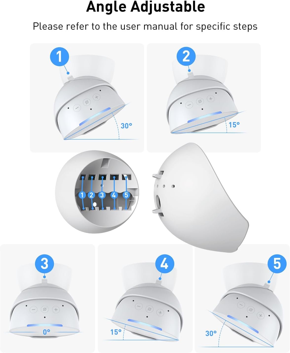 Angle Adjustable : Maxonar wall mount has five angles for adjustment. You can adjust the angle of the mount according to your needs. Please refer to the user manual in the package for specific steps