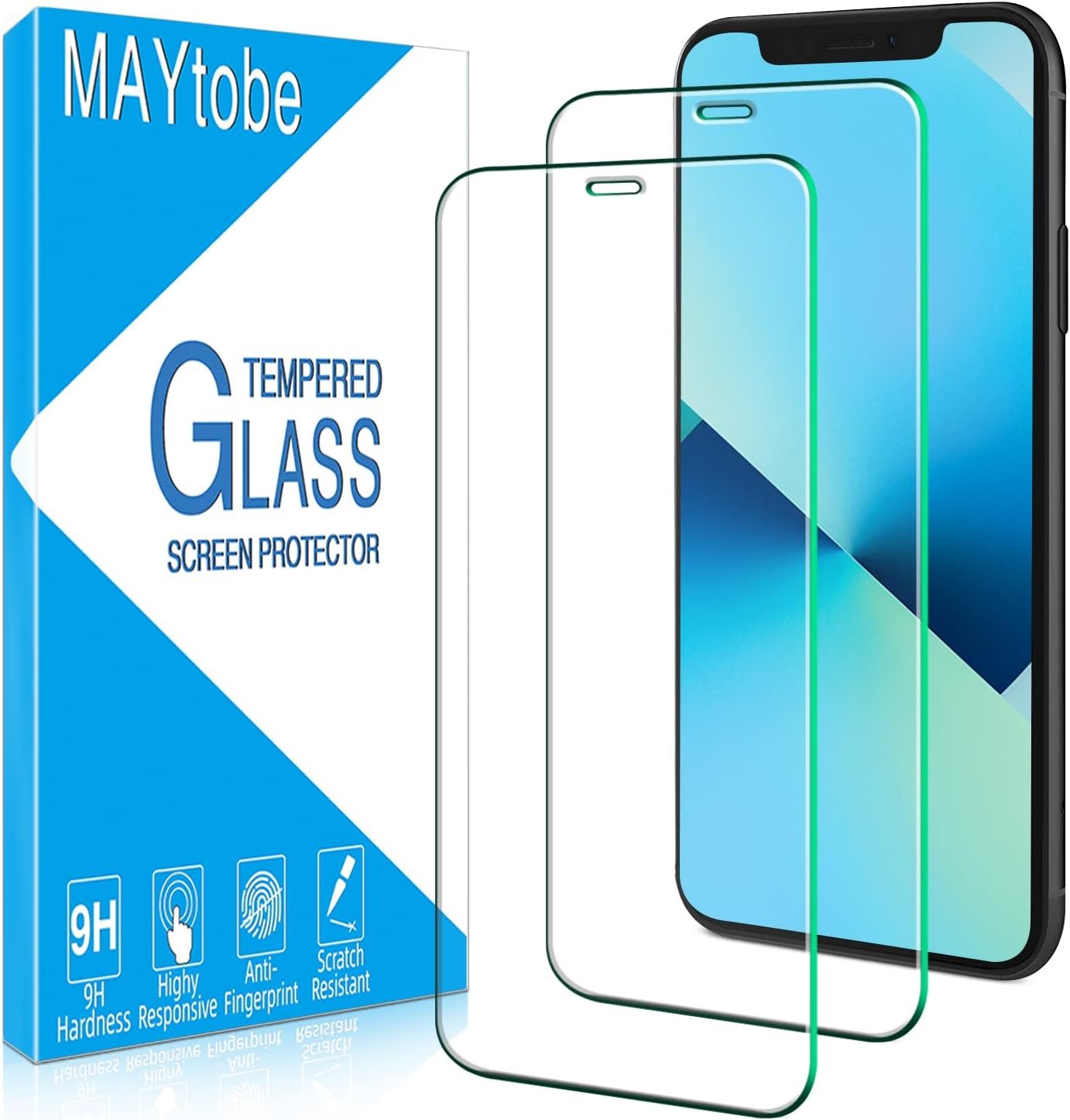 MAYtobe [2 Pack] Screen Protector for iPhone 11 and iPhone XR Tempered Glass, Anti-Scratch, Bubble Free, Easy to Install, Case Friendly