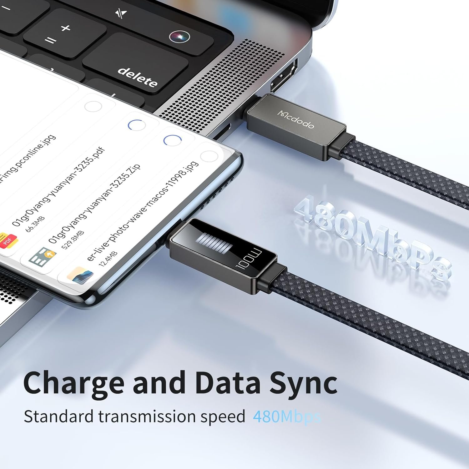 【PD100W Max Super Fast Charge】:Mcdodo USB A to USB C Cable supports PD 100W ultra-high power Compatible with QC4.0,SCP/FCP,AFC,SuperVOOC2.0/1.0/VOOC3.0 to fully charge Macbook pro 16” in about 2 hours,and ipad Pro 11” in about 2 hours.It takes 1 hour to fully charge Samsung Note 10,and the charging speed is superior to other ordinary 100W data cables,Efficient charging can save most of the time when charging your device,(Note:Actual charging speed depends on your device and wall charger.)