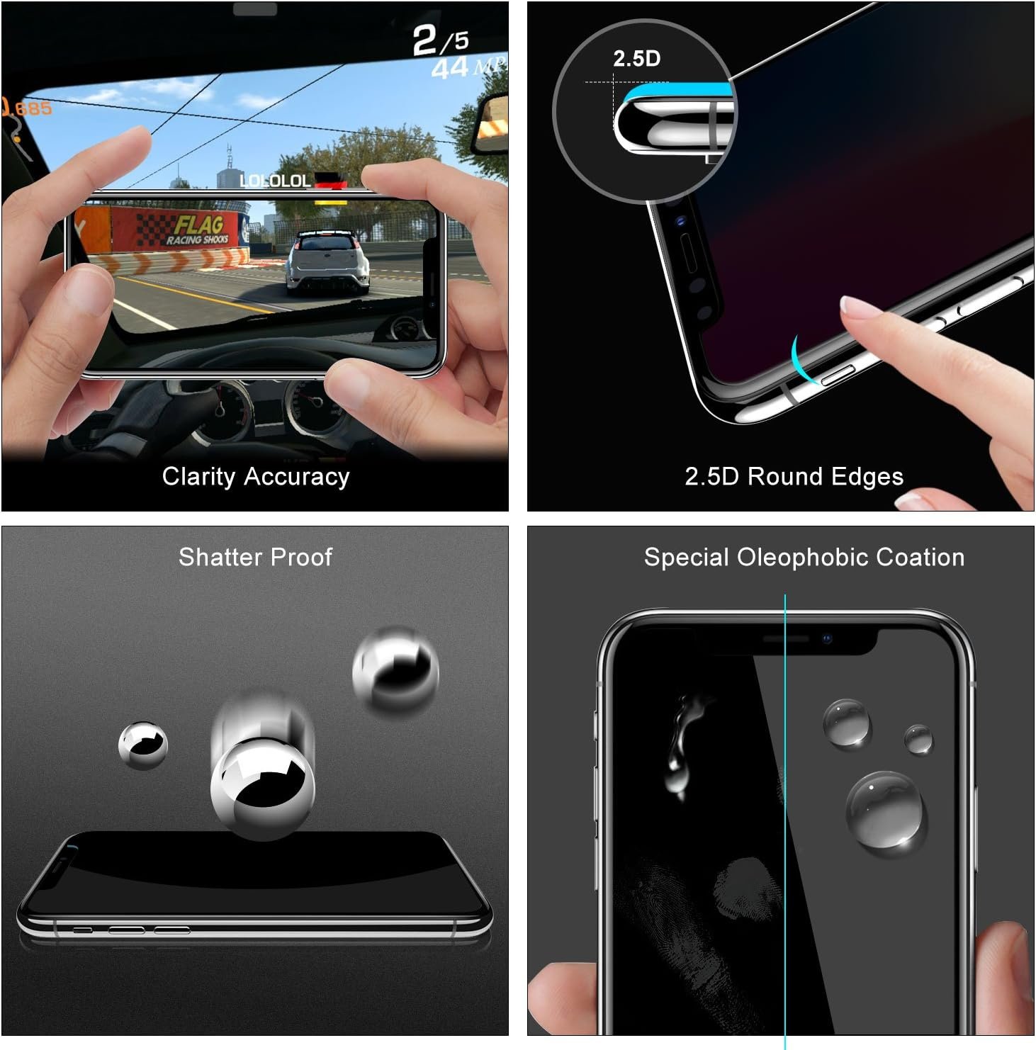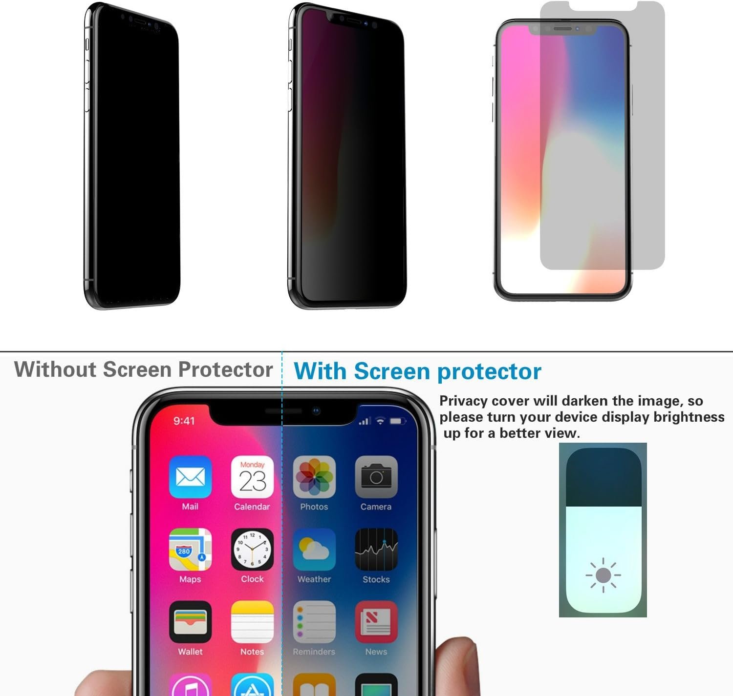 3.Privacy tempered glass screen protector does not cover the entire screen so that to enhance compatibility with most cases.Since iPhone screen is round-edge design, tempered glass screen protector is of marvelous durability as well as a reliable option to protect your iPhone screen from unwanted scratches, abrasions, scrapes, bumps or drops. You deserve the scratch terminator.