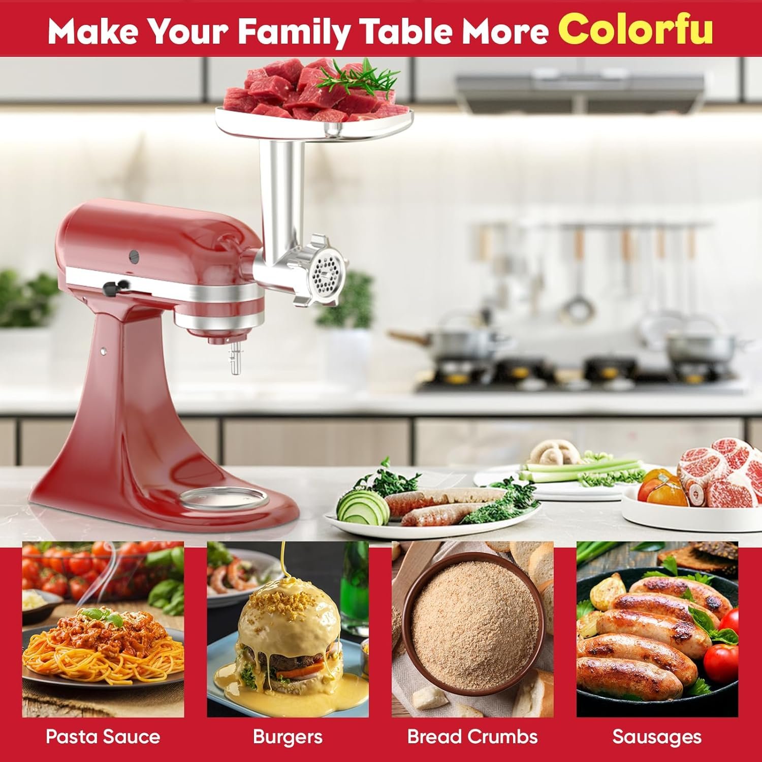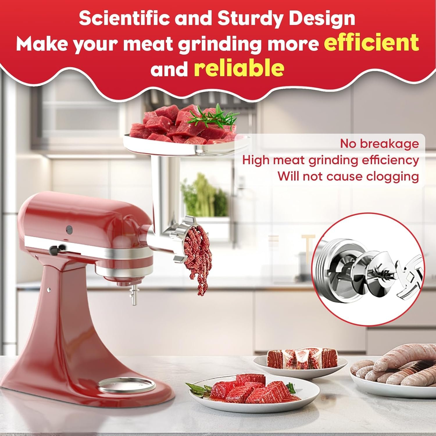 Efficient Grinding: The Kitchenaid Mixer Attachments not only grinds meat quickly, but also handles fruits, vegetables, hard cheeses, and other ingredients, the Kitchenaid Meat Grinder Attachment for Kitchenaid Stand Mixer provides you with a more efficient cooking experience