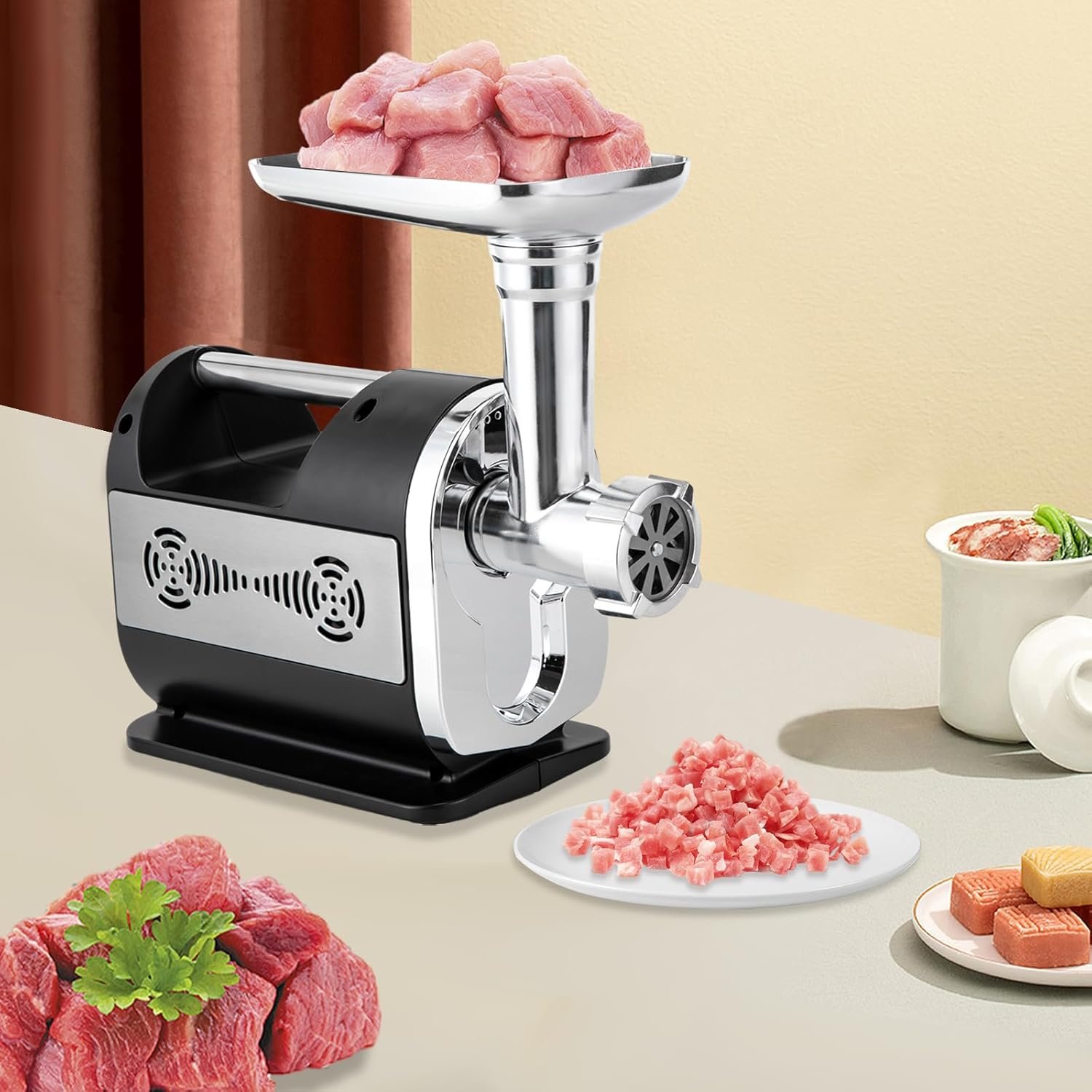 Traditional manual meat grinders produce coarse meat fillings and are laborious. Our electric meat grinder, however, effectively addresses these concerns. Constructed from premium stainless steel, ABS, and aluminum alloy, it is impervious to ru-st and boasts remarkable durability. The interchangeable orifice plates, sausage stuffer, and Kubbe kit can cater to your varied meat filling requirements while ensuring smooth meat grinding, delivering an unmatched culinary experience. Indulge in the rich flavor and succulent texture of freshly ground meat with our state-of-the-art electric meat grinder!