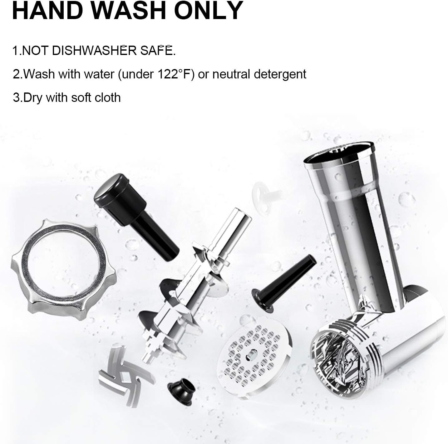 [Easy to Clean] All attachments can be removed and easy to clean with water (under 122°F) or neutral detergent, and please dry quickly with a towel. NOTE: NOT DISHWASHER SAFE.