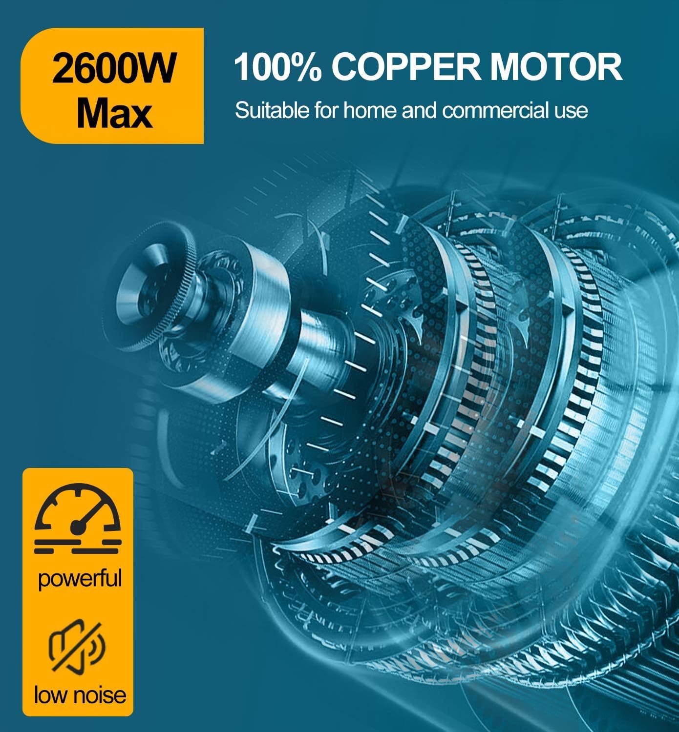[2600W Max Powerful Meat Grinder] Electric meat grinder with a powerful motor rated power up to 1000W(2600W Max), 3 pounds of minced meat can be produced 1 minute. Various meat could be processed, such as beef, pork, chicken, venison, duck, etc.