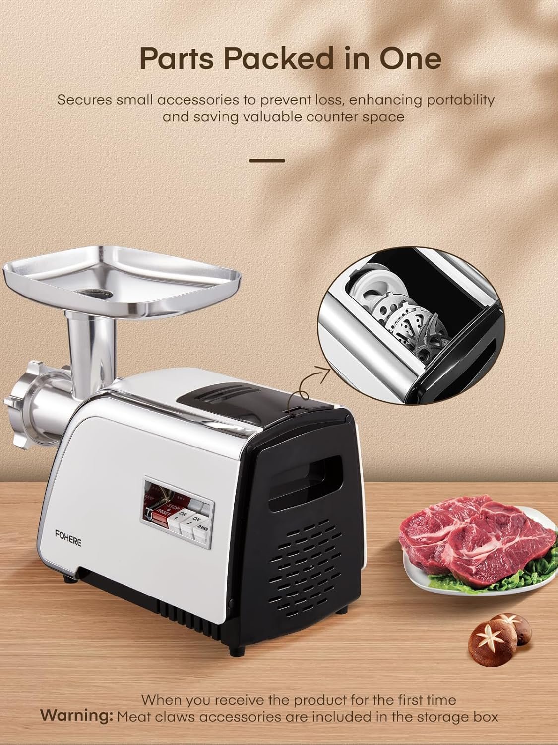 【Parts Packed in One】 With a storage box to secure small accessories, preventing loss, enhancing portability, and saving valuable counter space. [Note:] Meat claws accessories are included in the storage box upon the first receipt of the product.