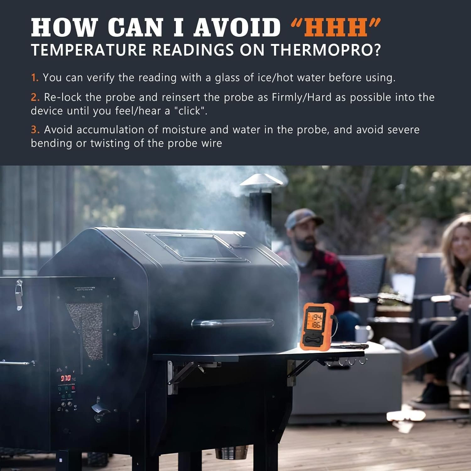 CALIBRATE TEMPERATURE CORRECTLY: You can calibrate the thermometer probe before use, a glass of ice water is the best way to calibrate it. Please avoid twisting the probe cable repeatedly, it will cause breakage.