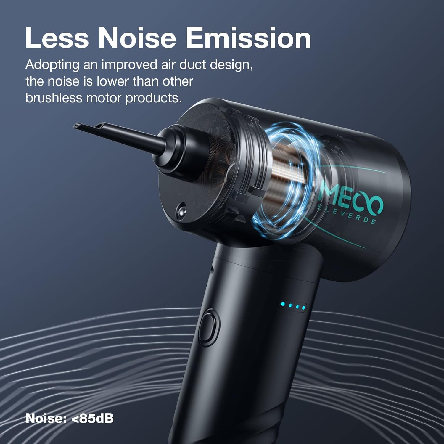Powerful cleaning effect: MECO compressed air duster max rotating speed is 100,000RPM, can blow strong winds with force of 1.93oz, produce high-pressure air to eliminate dust, clear the dirt hidden in various gaps on the keyboard or any electronic devices