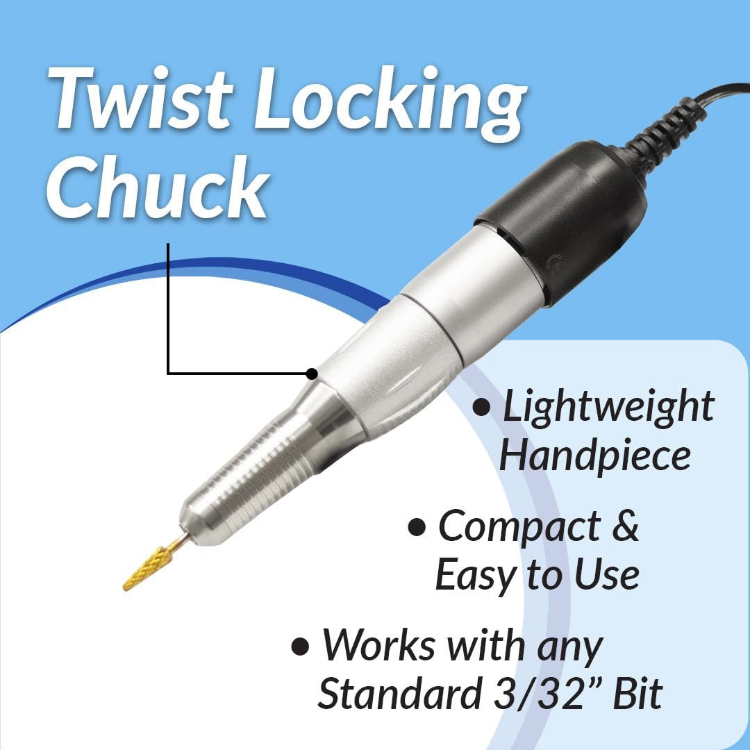 Lightweight HandpieceCompact & Easy-to-UseTwist Locking ChuckUses Standard 3/32″ BitsHandpiece Holder