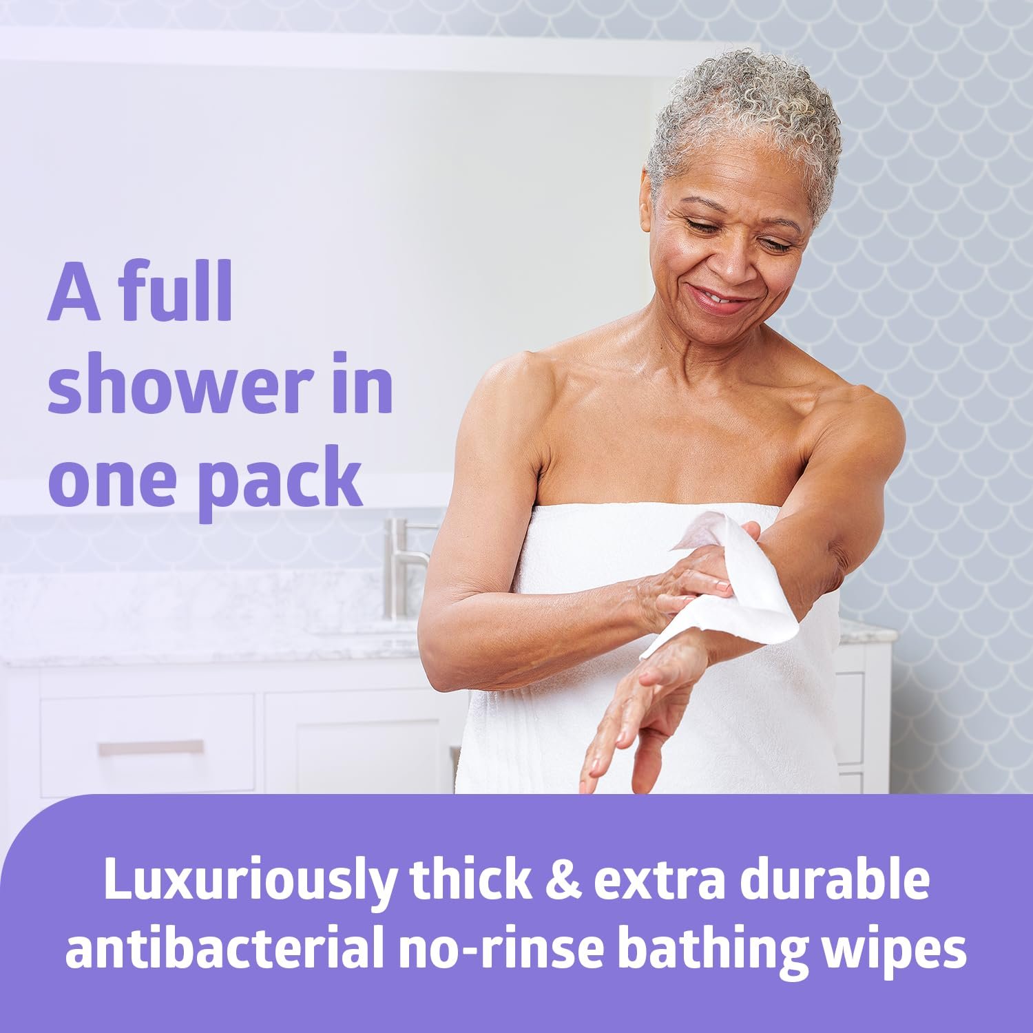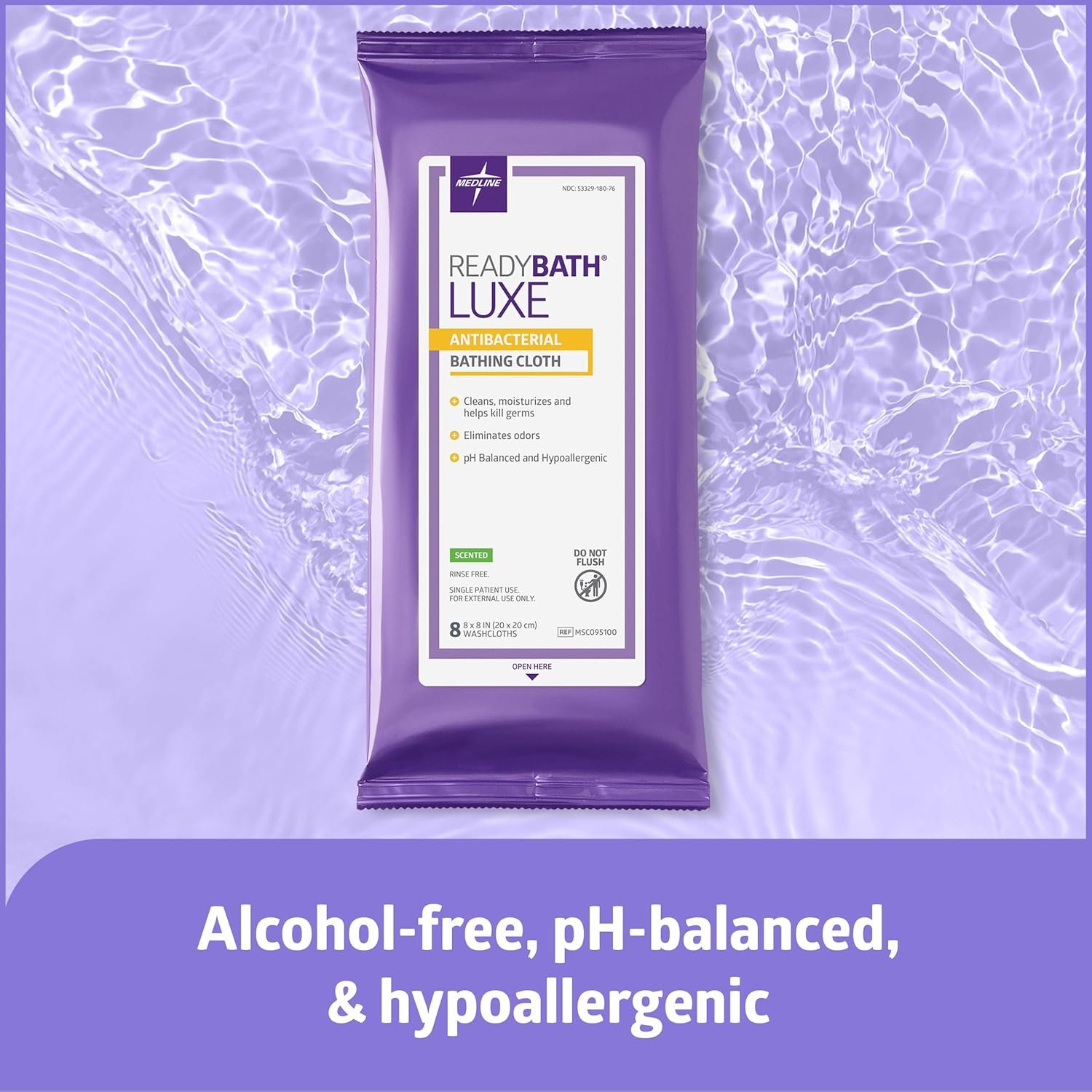 Stay comfortable while cleansing – ReadyBath LUXE bathing wipes soothe skin while eliminating odors and killing germs