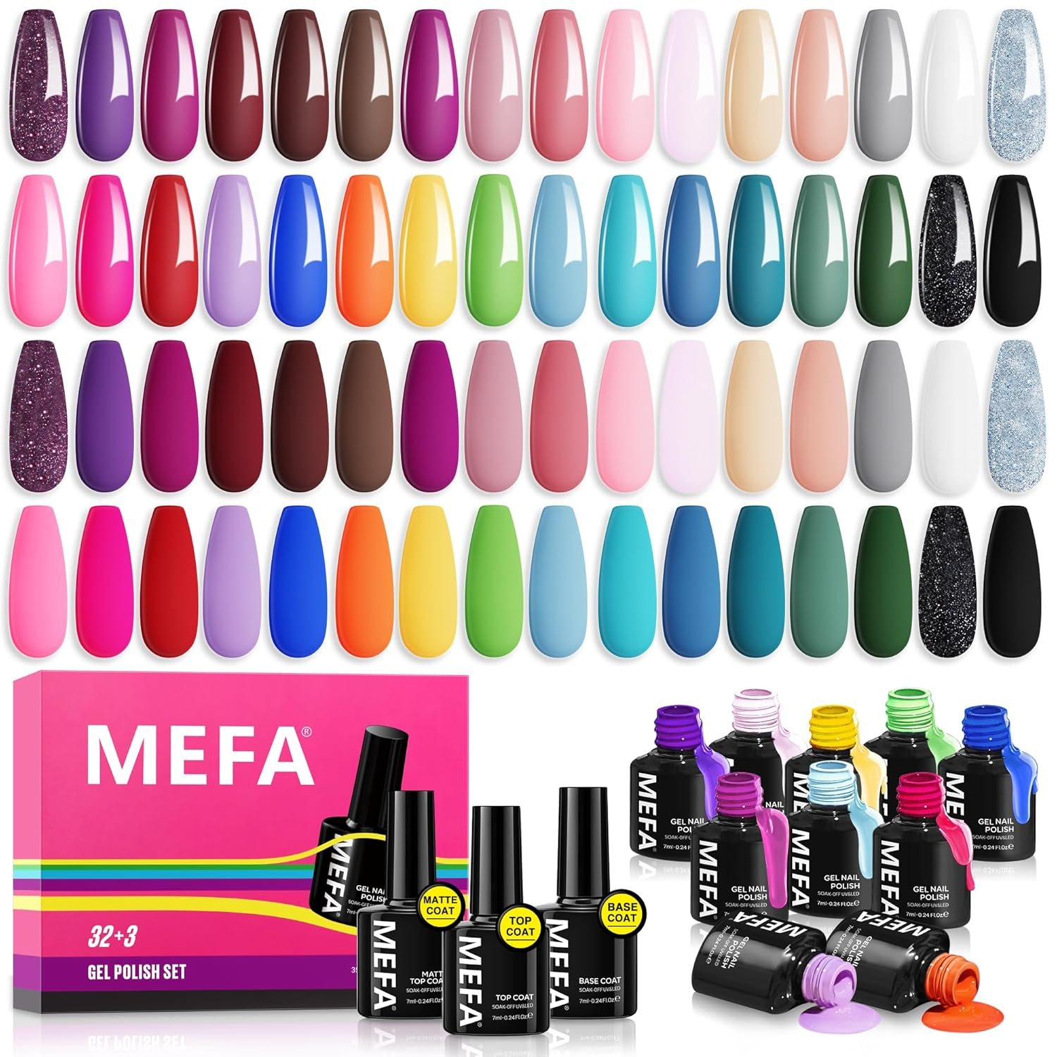 MEFA 35 Pcs Gel Nail Polish Set, 32 Colors Fall Winter Collection Gel Nail Polish Pink Green Nail Art Manicure DIY Home Gifts for Women Girls Beginners