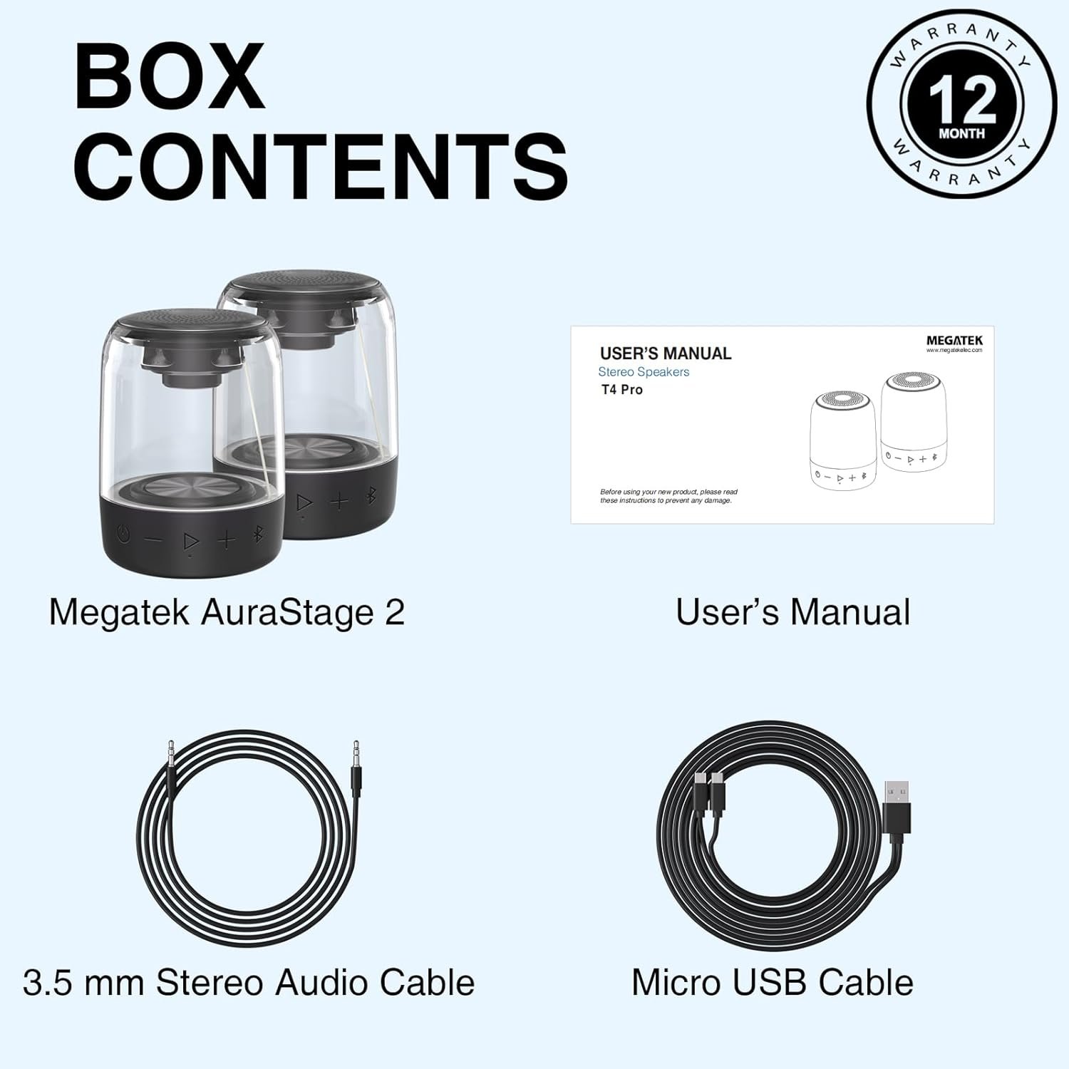 Megatek AuraStage 2 – dual portable Bluetooth speakers are a perfect combination of unparalleled quality sound with immersive wireless stereo soundstage, thanks to its featured TWS technology, and visually stunning LED light show.
