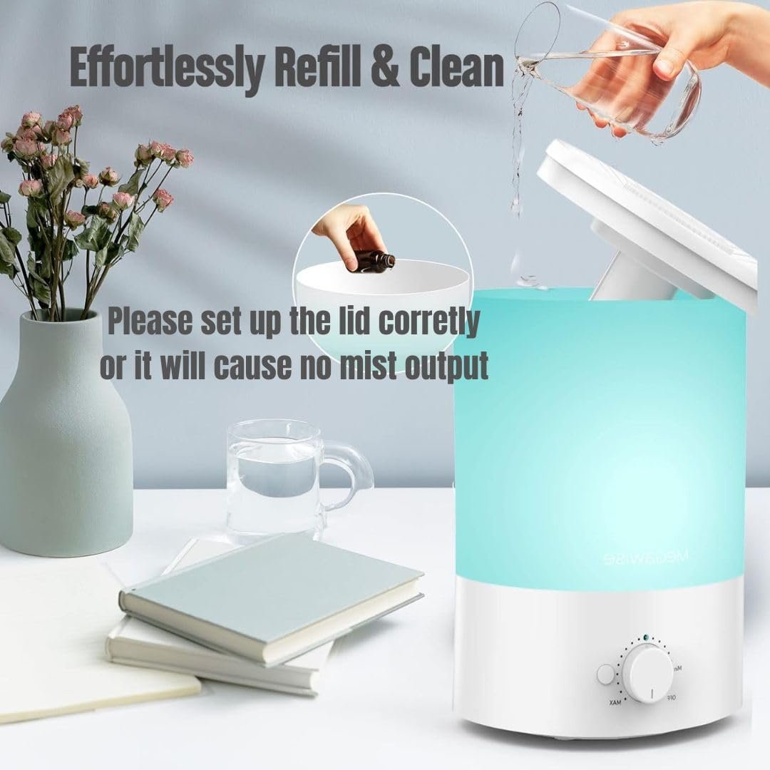 💞No Leak Design and Important Tips 💞 : Our humidifier is designed with a no leakage structure that integrates the bottom with the tank. This ensures that the water stays inside and does not spill or leak. However, please do not overfill the tank, as this will reduce the mist output to 0. The optimal water level is between the min and max marks, and also try to adjust the lid if no mist is putout, for a longer service life, please do read the FAQ and the use and care instructions before use.