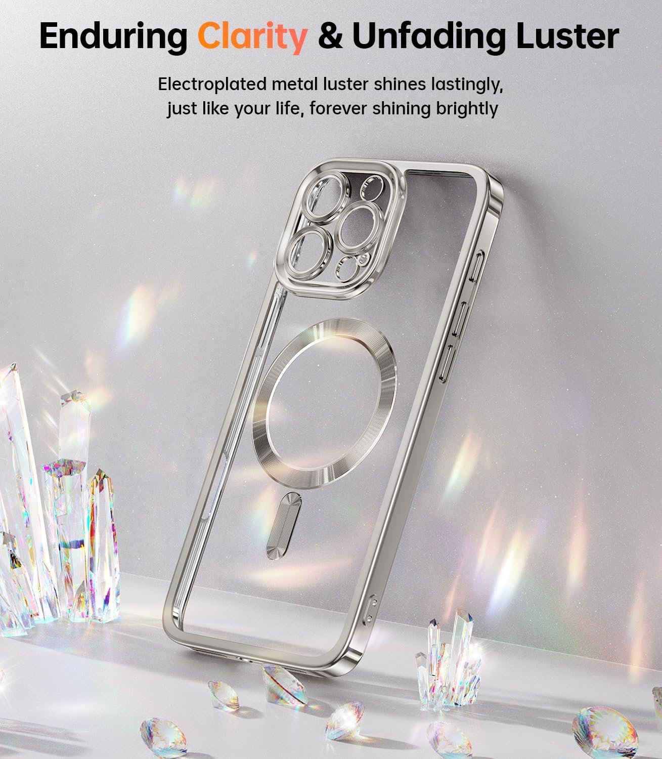 [Metallic Glossy & Crystal Clear] While maintaining the transparent back, the edges, camera, and magnetic ring are embellished with a metallic luster, making this case truly unique. The clear magnetic case designed for iPhone 16 Pro combines advanced technologies to preserve the stunning clarity of your iPhone. With its German optical Say goodbye to unsightly yellowing and enjoy a case that always looks as good as new.