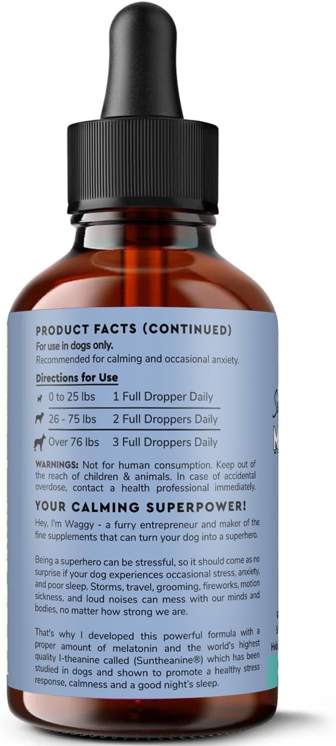 POWERFUL MELATONIN FOR DOGS: Wonder Paws premium melatonin for dogs combines melatonin with L-Theanine (Suntheanine) to help reduce occasional anxiety, stress, promote calmness and support restful sleep. Unlike other calming supplements for dogs, we use clinically studied L-Theanine with melatonin in an easy to use liquid dropper, just drop in food or water. No matter your dogs age, breed or size, give your loved one the gift calming zen!