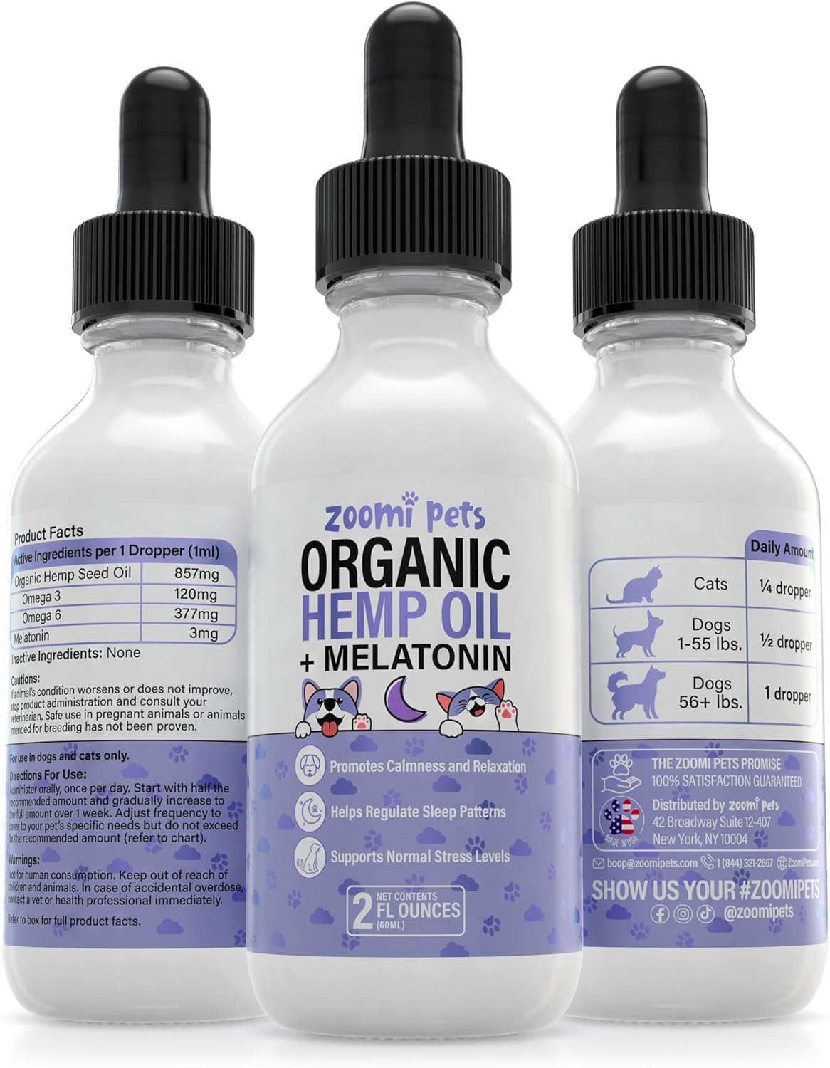 🌱 ORGANIC HEMP OIL FOR DOGS & CATS WITH MELATONIN – An optimal balance rich in essential omega fatty acids supports heart, kidney, eye and brain function. This pet hemp oil for dogs and cats is perfect for all breeds and sizes and can help promote regular sleep patterns.