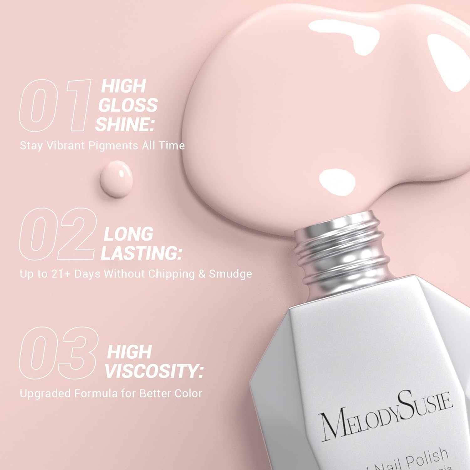 Melodysusie THICK GEL:Only a thin layer of gel is needed for perfect coverage. If you apply too much gel, you will need to cure it under UV light for 30+s.Various gel polish colors can be adapted to different seasons throughout the year. It is easy to have a variety of nail styles to meet your needs for work, clothing, and activities. You can also use different colors to create your own nail art.