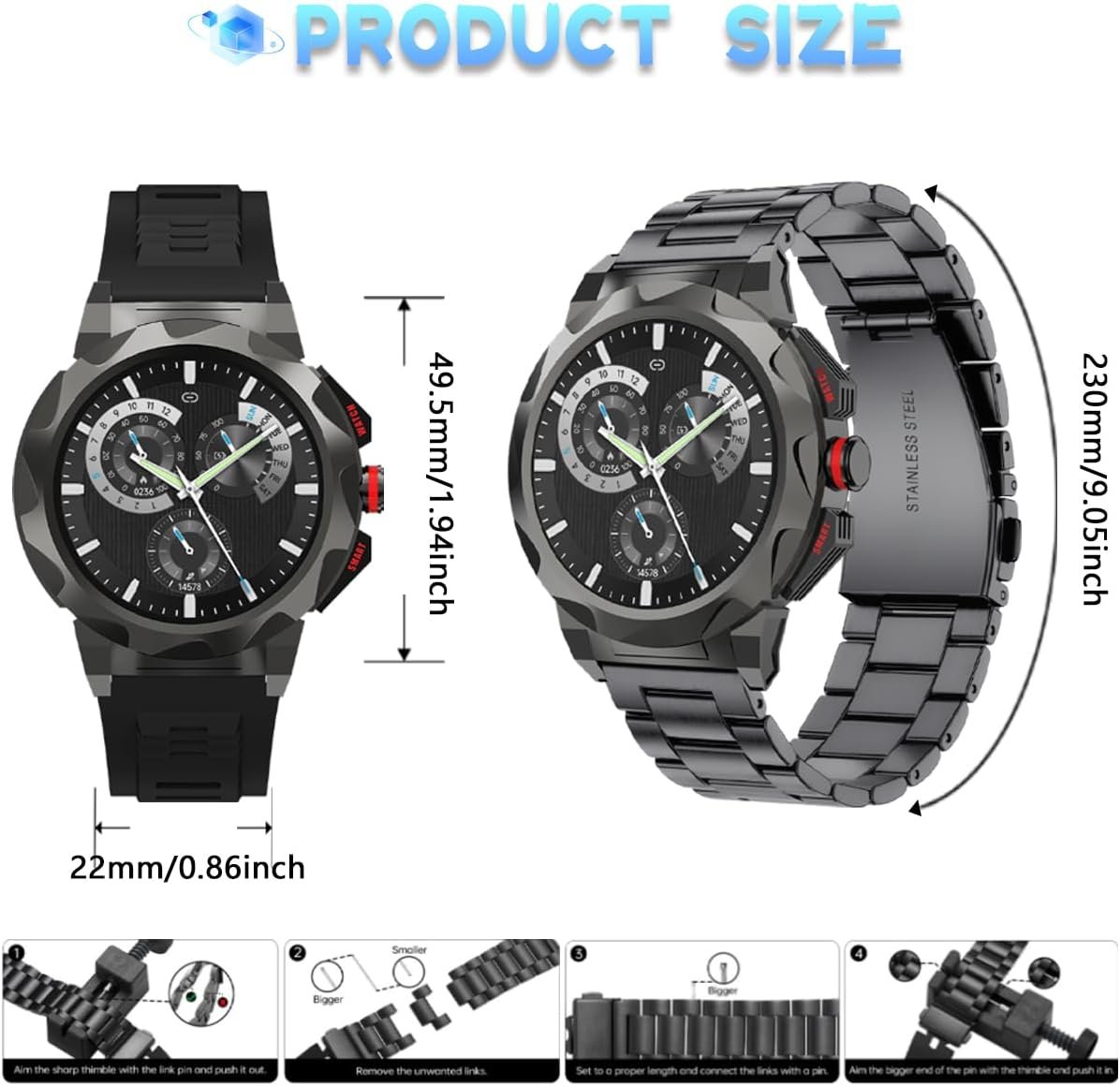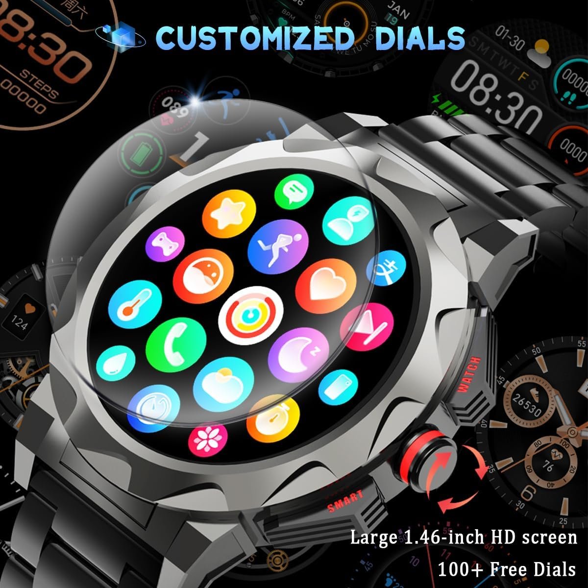✍【HD large screen, touch screen sensitive and smooth】1.46-inch large-shaped round model screen, full touch screen form, ultra-high sensitivity, smooth animation transitions, additional with a button, press to control the bright screen, resting screen; rotate to control the replacement of the dial and the menu bar up and down options. Simple operation, wide field of vision, smooth use