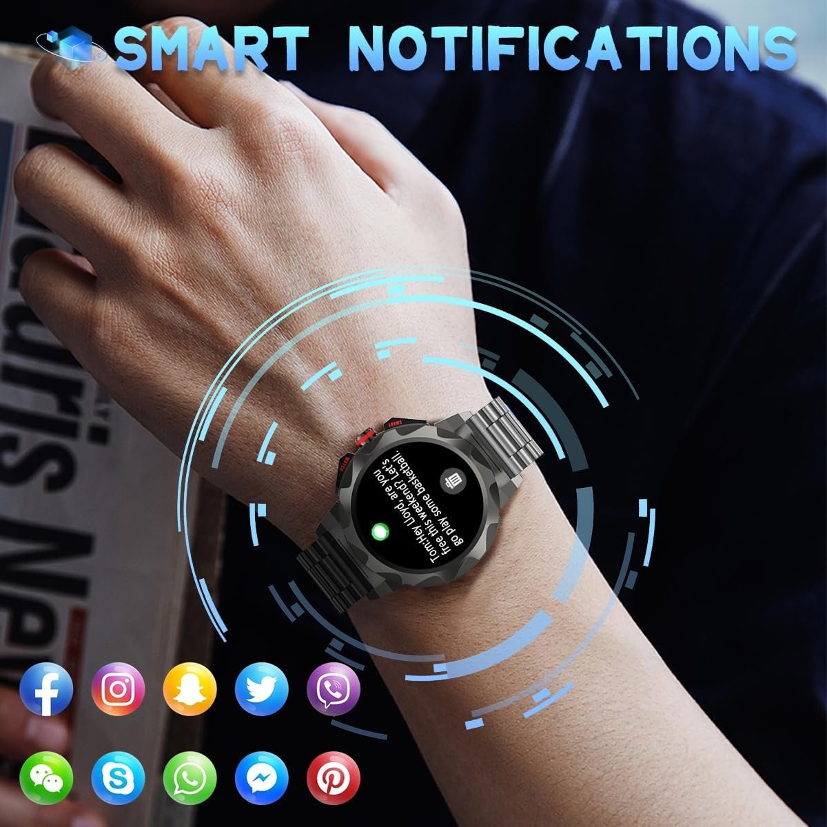 💖【HEALTH MANAGER】 LOYEWAIER Men’s Smartwatch with sleep, heart rate, blood pressure, blood oxygen monitoring function, so that you can easily understand your status on your wrist, you can set the minimum and maximum heart rate, and will vibrate to remind you when it exceeds or falls below this indicator. Please note: This device is not a medical device, if you are not feeling well, please seek medical attention in time!