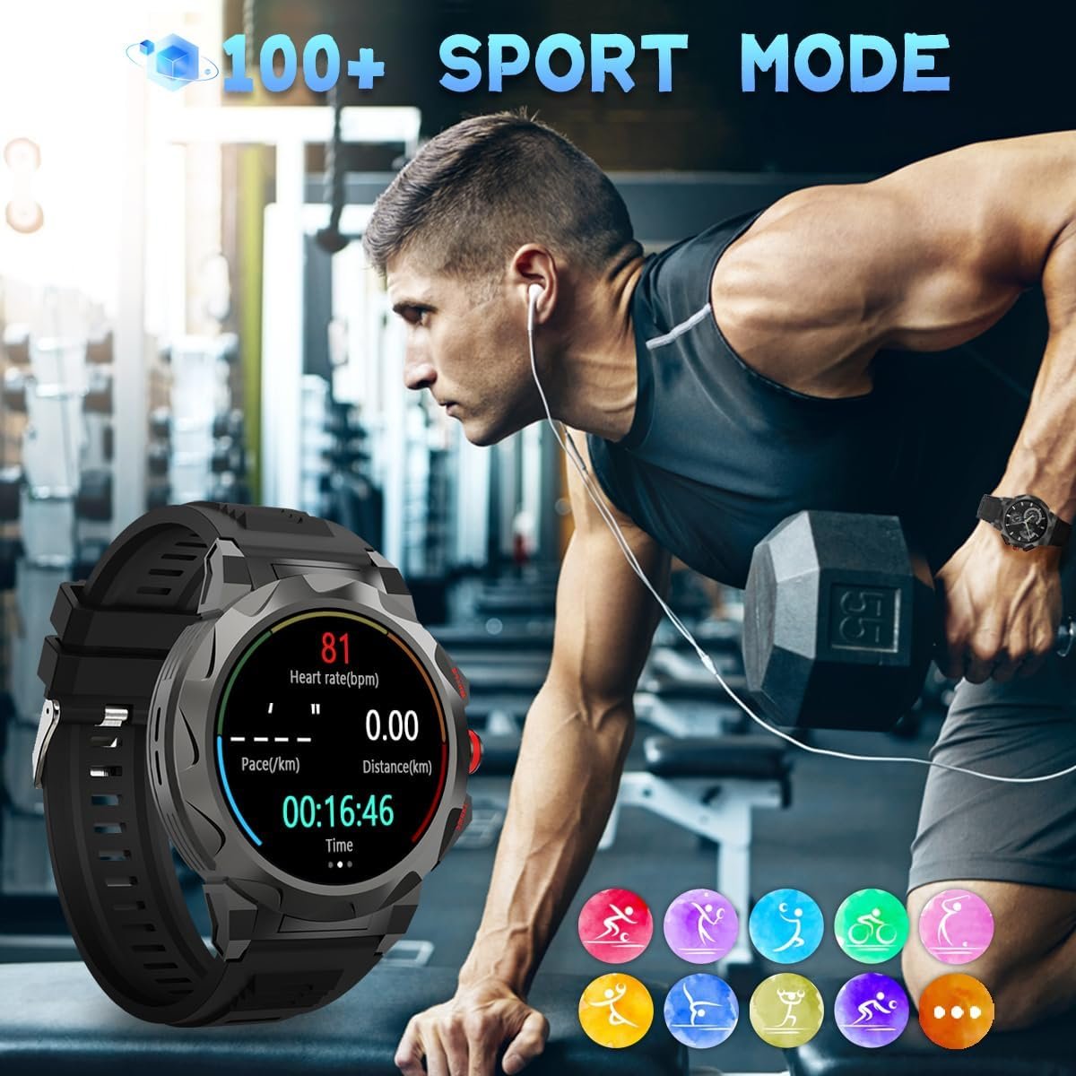 🥇【100+ Sport Modes】 This fitness smartwatch, configured with 100+ sport modes, including running, jumping rope, basketball, soccer, skiing and other super sports modes, do not need to download on your own, turn on the watch and you can use it!